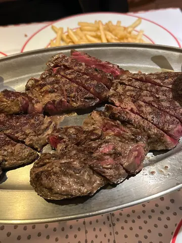 La Vache! 嘅牛扒出名抵食,质素唔错。前菜有沙律,新鲜沙律配合香脆嘅合桃同埋萝卜,新鲜又开胃。主菜叫咗三成熟嘅牛扒,肉质鲜嫩外焦内嫩,牛味浓郁,而且薯条系可以无限refill嘅,非常抵食又满足。另外朋友试咗五成熟,口感分别都几大,明显三成熟嘅更加嫩,所以如果食到生嘅都可以试吓三成熟。…查看更多