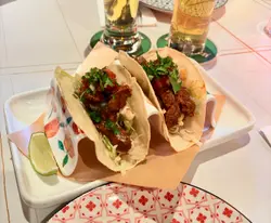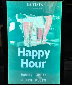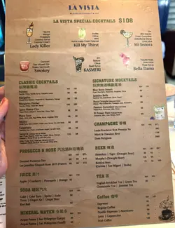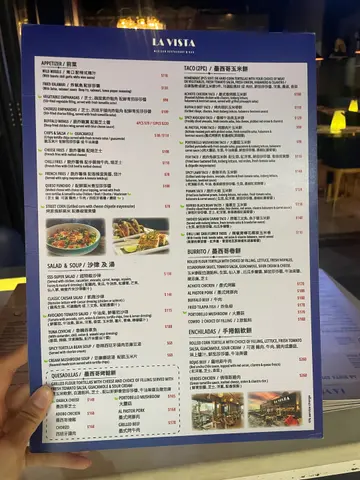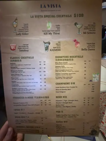 今晚放工后同事约去 Happy Hour, La Vista 墨西哥酒吧餐厅 , 位于尖沙咀天文台道. 好喜欢这个装修风格, 可以选择坐室外/室内, 轻松地碰碰杯. Happy Hour 每天 由 3:00 - 8:00pm, 大家看看 Drink list, HH 饮品有优惠, 多款 Cocktails, Mocktails, 红酒, 白酒, Beer, 果酒及果汁. 餐厅内布置很用心思, 灯饰高雅, 灯光悠扬, 皮梳化座, 好靓.加上音乐, 倍令人觉好情调. 桌上有灯台, 颜色醉人. 店员很有礼, 安排好我们的座位, 即送来餐牌及酒牌. 我们钟意 招牌鸡尾酒 Classic Cocktail, Margarita , 玫瑰 汽泡酒 Prosecco & Rose. 味清香, 带些甜味几好入口.大家来个 Cheers !!墨西哥餐厅 Tacos 是招牌菜. 款式选择多. 我们点了 烤豚肉片玉米饼 Al Pastor, Pork Taco. 即制即送来. 卖相摆设非常讨好. 有特式, 一客两件. 饼皮质感够柔软, 含麦香. 烤豚肉片烧得香, 豚肉片份量多, 质优味浓, 伴有洋葱, 番茄粒. 酱汁带点少辣, 好滋味.接著 脆炸鸡翼配蓝芝士酱 Buffalo Wings, 一客4件. 热腾腾一盘送上.经典水牛城鸡翼美式口味, 腌料有少辣, 再沾些蓝芝士酱, 更添开胃感. 佐酒一流.今晚选了主菜: 纽西兰慢煮嫩羊腿 New Zealand Lamb Shank 用铁锅上台, 份量大, 足够两人分尝. 伴菜有: 沙律菜, 椰菜, 薯蓉, 洋葱丝, 蕃茄, 甘荀, 椒丝, 配搭得宜, 组合吾错. 先吃口沙律菜, 清新爽脆, 混上酸甜沙律酱好醒胃. 慢煮羊腿, 好稔嫩, 肉味质优, 伴上惹味酱汁 , 调味非常好.一口肉, 再来一口伴菜, 吃得有层次. 洋葱丝, 蕃茄, 甘荀, 椒丝, 入口爽甜, 酸酸地, 特别滋味 !餐厅气氛相当好, 食材有质素, 厨师用心煮法特别, 我们品尝到墨西哥餐风味, 再来个碰碰杯, 好 Happy !…查看更多