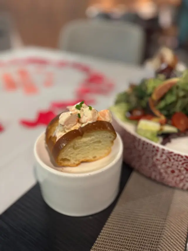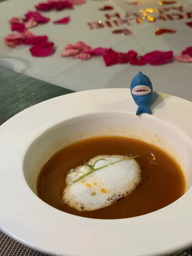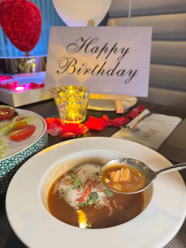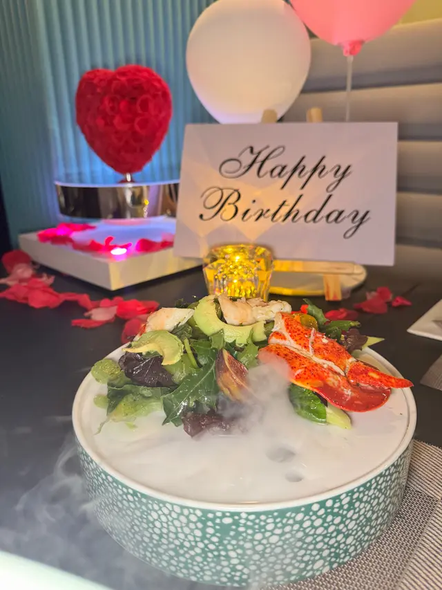 餐廳位於知名女校的後門旁,是一家十分適合慶祝的餐廳。提前訂座可以安排打卡裝飾及畫碟甜品。在OpenRice訂座可享主菜餐牌正價88折,不過套餐、海膽多士、生蠔、黑松露黃油雞、斧頭扒及支裝紅白酒不適用。甫入座,見餐廳安排了的枱頭裝飾,已十分驚喜🫶🏻見其它枱面上也有類似的慶祝裝飾,果然是約會、慶祝之選👍🏻點了龍蝦二人餐龍蝦配法式牛油包龍蝦肉爽彈,法式牛油包外脆內軟,蘸龍蝦汁更顯滋味。龍蝦牛油果沙律新鮮龍蝦肉配搭熟成牛油果,沙律菜清爽,醬汁酸甜開胃,賣相加入乾冰效果,打卡一流。法式龍蝦湯湯底濃郁,龍蝦鮮味充分融入,帶淡淡奶香與白蘭地酒香,風味傳統到位。經典意式龍蝦意粉意粉彈牙,龍蝦肉量足,蕃茄醬汁酸甜平衡,蒜香與香草提味,做法經典不花巧。炭燒安格斯牛肉眼肉眼火候控制得宜,外層微焦,內裡肉質粉嫩,牛脂香氣豐盈,配海鹽簡單調味已足夠美味。最後是每日驚喜甜品,除了那畫碟,烟花效果更叫人驚喜🫶🏻滿意、滿足的一頓慶生晚餐。…查看更多