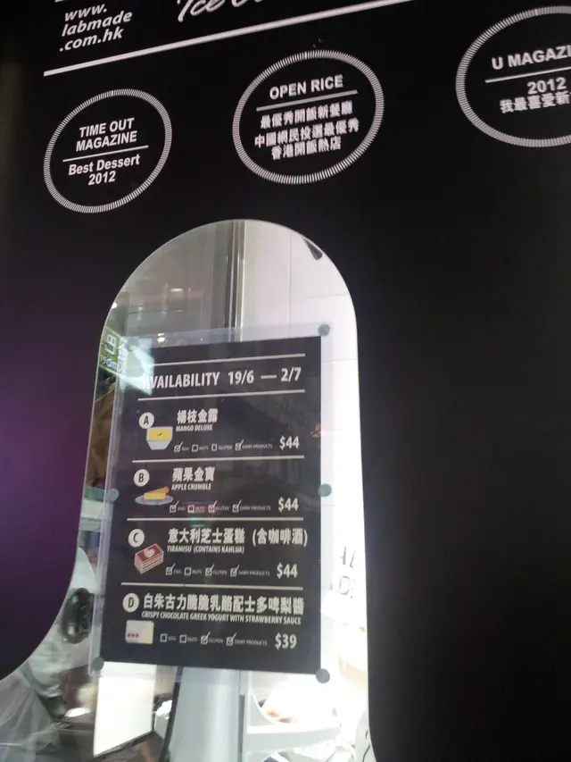 Lab Made 分子雪糕專門店 (尖沙咀) 网址: https://s.openrice.com/QrLS04JW200 地址: 香港尖沙咀彌敦道132號美麗華商場地下G42號舖 电话: +852 9355 4476