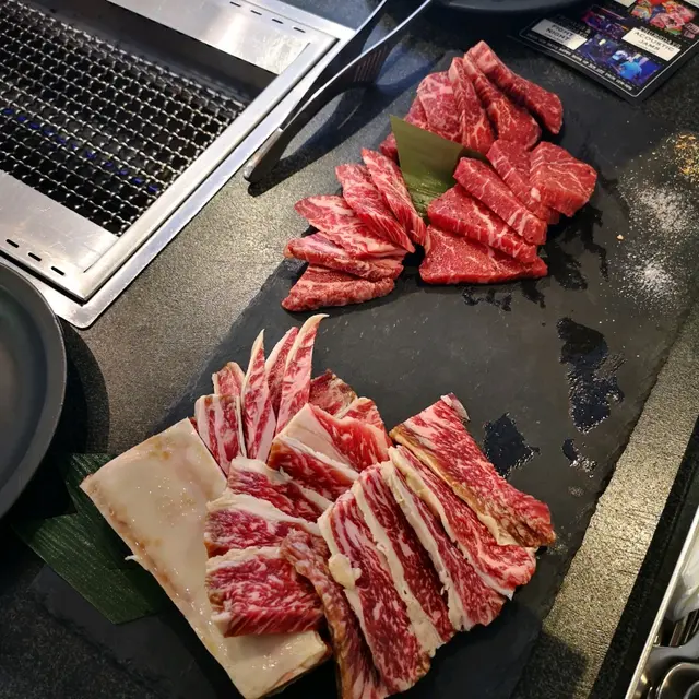 韩式烧肉餐厅,以「无烟韩烧」吸引一众烧肉迷。牛魔王必选牛肉拼盘,7款牛部位包括牛舌、牛板腱、西冷、牛肩肉等,依次放在拼盘上。