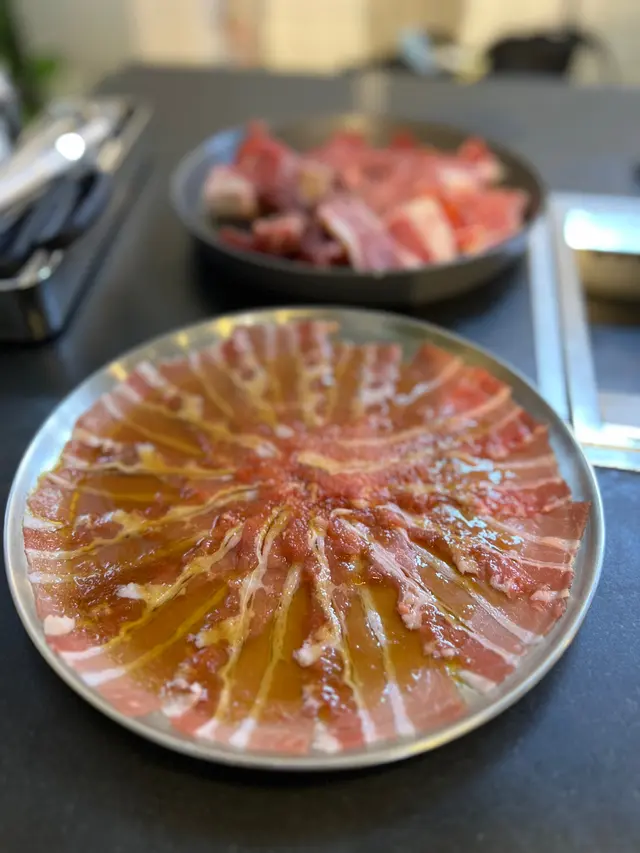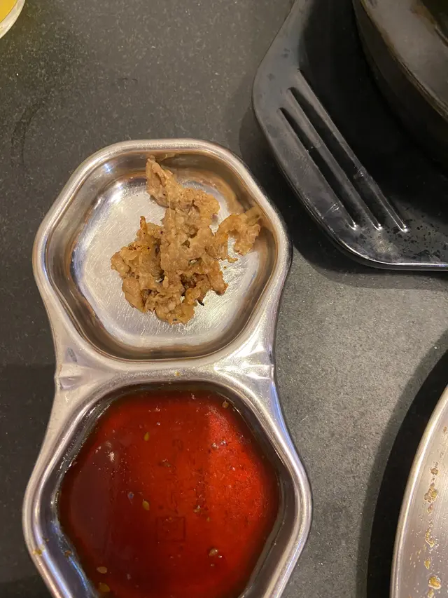 碟牛五花超級薄,呢度係3塊嘅份量,燒完之後縮晒水,再加上又有好多黐咗喺個爐上面,所以份量又少咗,完全貨不對辦😰真係覺得太唔合理所以就問咗職員點解會咁。同佢講完個情況之後,佢叫我等一陣,然後就無視咗我,仲要特登避開我張枱,服務態度勁差。然後另一個人走過來解釋話廚師新嚟,唔係好熟悉廚房切肉嗰部機,所以切薄咗,一大堆廢話😅重點係佢自己講之前已經有顧客同佢反映過呢個問題,即係間餐廳自己知道有問題但到而家都唔改善😅😅最尾佢求其俾咗個九折我哋,然後話下次嚟會叫廚師切返厚啲。呢間真係唔值得嚟,價錢又唔係平但質素就好差😧以後都唔會再嚟,奉勸大家都唔好食呢間🫨😰查看更多