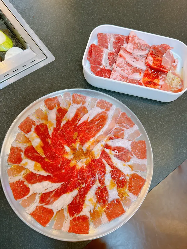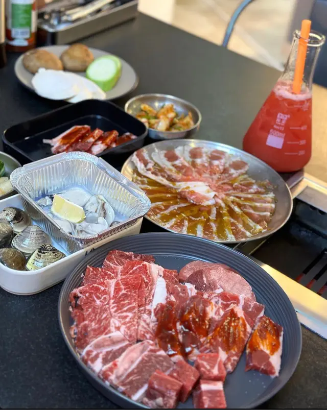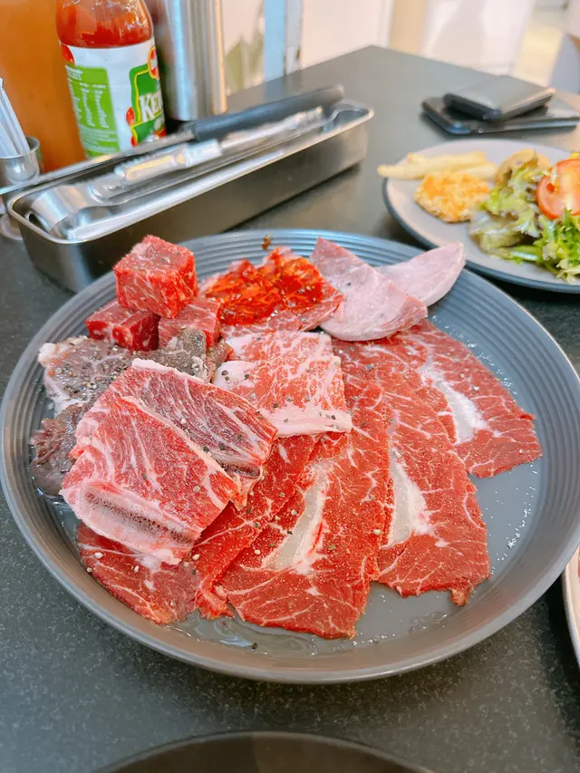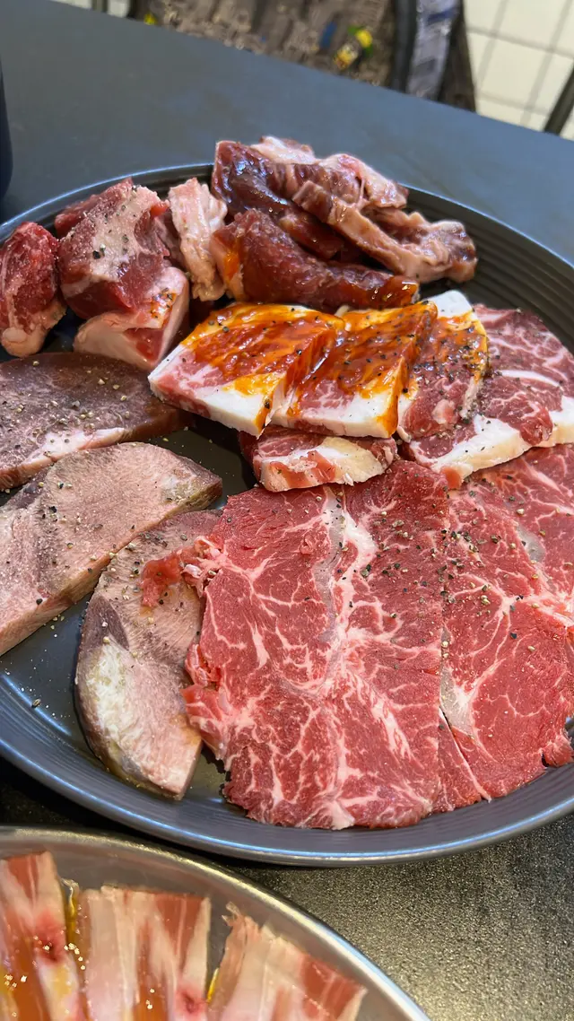 最中意就係燒燒燒,但係成日都好怕燒到成身味🥺 呢間有唔少ᴛᴇsᴛ ᴛᴜʙᴇ做裝飾又主打成無煙燒肉就啱哂我啦🙈影相打卡ᴇᴀsʏ ᴊᴏʙ,鐵板燒非常有風味,火力仲好猛好快燒熟😆 我就揀咗sᴜᴘʀᴇᴍᴇ sᴇᴛ,一個價錢就有齊ʙᴄᴅ嘅野啦✨1️⃣ 自助區 🥗基本上有唔少開胃小食、炸物同沙律🥒~ 拎少少翻位邊食邊燒🤤2️⃣ 原條牛肋條肉 🐮ᴡʜʏ sᴏ ᴊᴇɴɢ!🥺 呢條牛肋條原條上台好震撼,雖然一開始個陣未係全熟,但係已經超香了🤣 打完於之後職員仲會幫手ᴄᴜᴛ開方便啲燒,啖啖肉好ᴊᴜɪᴄʏ,另外個條骨仲痴有啲肉,真係唔好睇小呢啲肉,因為揸上手一樣咁好食😋3️⃣ 爐邊燒蛋 🥚雞蛋控千祈唔好錯過‼️ 靜靜雞同大家講💮 呢到除咗平時食開嘅泡菜、粟米同芝士粒之外,仲推出咗少見嘅麻糬同芫荽呢兩款配料,係可以無限ʀᴇғɪʟʟ嫁😝4️⃣ 韓式厚燒豬五花 🐷呢個係重量級嘅代表🙈 大大份放係爐上面燒,燒到熟熟哋就剪開細細件再燒中間位置,肥瘦均勻得嚟又帶有芝麻香😌5️⃣ 安格斯牛肉拼盤 🐄牛魔王必嗌😚 牛板腱、牛舌、牛肩肉、牛五花樣樣都咁好食🙌🏻 牛五花用咗韓式梨汁嚟整,醃咗都唔會太鹹,食落甜甜哋,而牛舌厚切唔會薄切切🔪 牛味好濃郁,仲可以連埋京蔥一齊食,食完一塊又一塊,真係停唔到口😛6️⃣ 牛油雜菇 🍄一份有齊金針菇、蘑菇、杏鮑菇、茶樹菇… 乜菇都有😍 加埋牛油一齊唔會燒到好燒身🧈 加上用錫紙兜裝住燒唔洗怕燒燶,放喺度等佢慢慢熟就食得啦🤩7️⃣ 海鮮類 🐚當然唔少得虎蝦、蜆、廣島蠔同魷魚🦑 款款都新鮮又生猛,虎蝦仲大隻肉厚好彈牙添🦐8️⃣ 飲品🍹試咗熱情果梳打同青蘋果梳打🍏 好多ʙᴜʙʙʟᴇ好ғʀᴇsʜ 🫧 仲有其他味道嘅梳打,全部任飲又解渴😎9️⃣ 甜品 🍮棉花糖同ʙʀᴏᴡɴɪᴇs燒到微熱外脆內軟好幸福,另外仲嗌咗芒果刨冰🍧 建議大家一定要試吓呢個刨冰,因為完全係出乎意料之外👅 呢到用咗益力多做冰底,而圍邊全部都係甜甜嘅粒粒芒果🥭 我諗分分鐘出色過唔少甜品店💦 有驚喜💫㊙️㊙️㊙️同行大放送🎉 宜家逢星期一至四揀sᴜᴘʀᴇᴍᴇ或者ᴘʀᴇᴍɪᴜᴍ仲有買二送一嘅優惠,快啲帶埋朋友同屋企人嚟食啦🪄查看更多