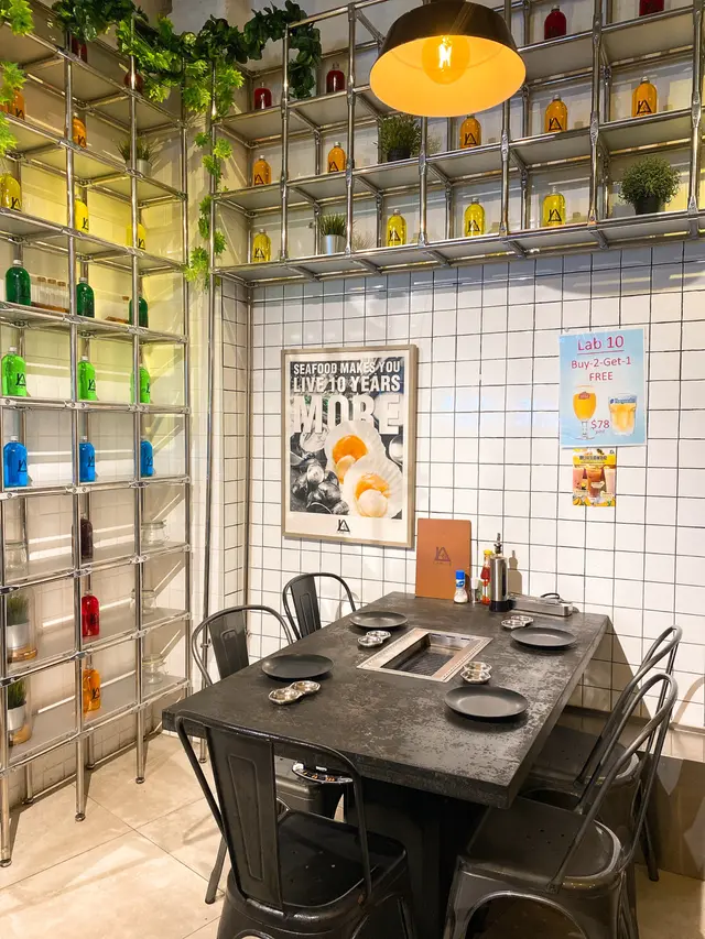 朗豪坊有間以實驗室主題嘅燒肉店「Lab10」🧪🔬通風系統夠強,主打無煙燒肉☺️揀咗Supreme set(2位).肉類🥩有牛五花🐂牛脊肉、牛肩肉🐄安格斯牛板腱🐮香蔥豬梅花肉🐖牛板腱大塊嫩滑😋牛脊肉油花多又Juicy👍🏻牛五花肉味濃郁🤤.蔬菜🥬有冬菇、雞脾菇🍄茄子🍆翠玉瓜、粟米🌽.海鮮🌊有虎蝦🦐蜆🐚廣島蠔🦪虎蝦新鮮大隻😍其他就一般質素🥺.小食🥢有沙律🥗薯條🍟炸物、唐楊炸雞🍗泡菜、漬物🥒肉醬意粉🍝全部小食都唔差,肉醬意粉味道剛好😬.甜品🍮有得燒棉花糖☁️黃豆粉紅豆年糕🫘布朗尼🍫都幾好玩又有得食😜.飲品🥤有水果梳打同汽水🍹我就比較推酸甜又Fresh嘅青檸梳打🍋不過士多啤梨梳打都唔差🍓查看更多