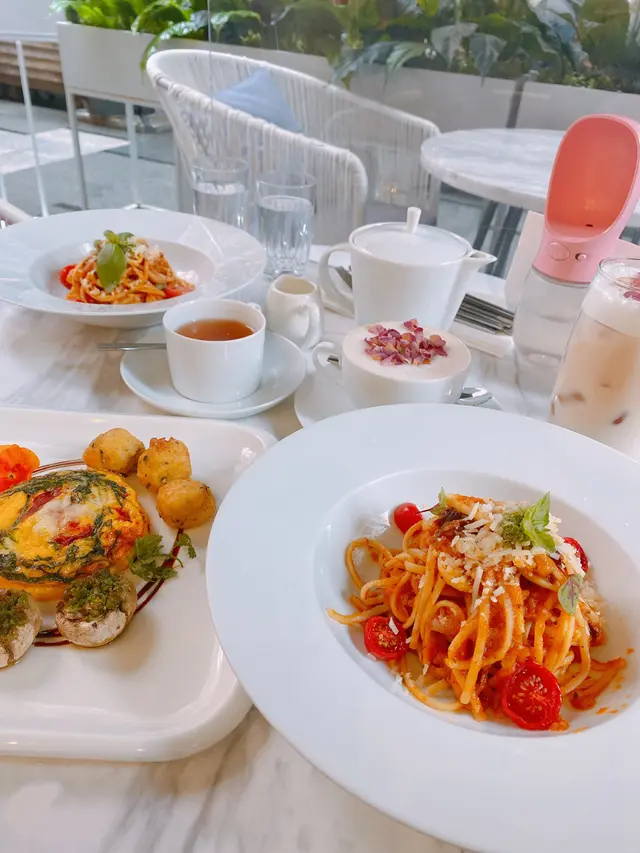 裝修以白色為主簡約設計,令人覺得好清新舒服設有outdoor,可帶埋寵物一齊chill下最欣賞嘅係Lady M無限時用餐唔洗擔心食得嘢嚟就唔夠時間傾計週末帶埋阿女同友人brunch$188 有主食+蛋糕+飲品,價格合理經典意式蕃茄扁意粉啱晒小朋友口味酸酸甜甜好開胃👍🏻意式早餐蛋批蛋味香濃😍菇菇好juicy,口感軟熟薯仔波波太淋,面唔脆阿女㨂咗經典原味千層蛋糕平時少食甜品嘅佢,佢話好香好滑自隊咗一件👍🏻伯爵茶千層蛋糕好香濃嘅伯爵茶味口感柔滑細膩😙法國玫瑰熱鮮奶茶好香嘅奶味我覺得甜咗少少😜…查看更多