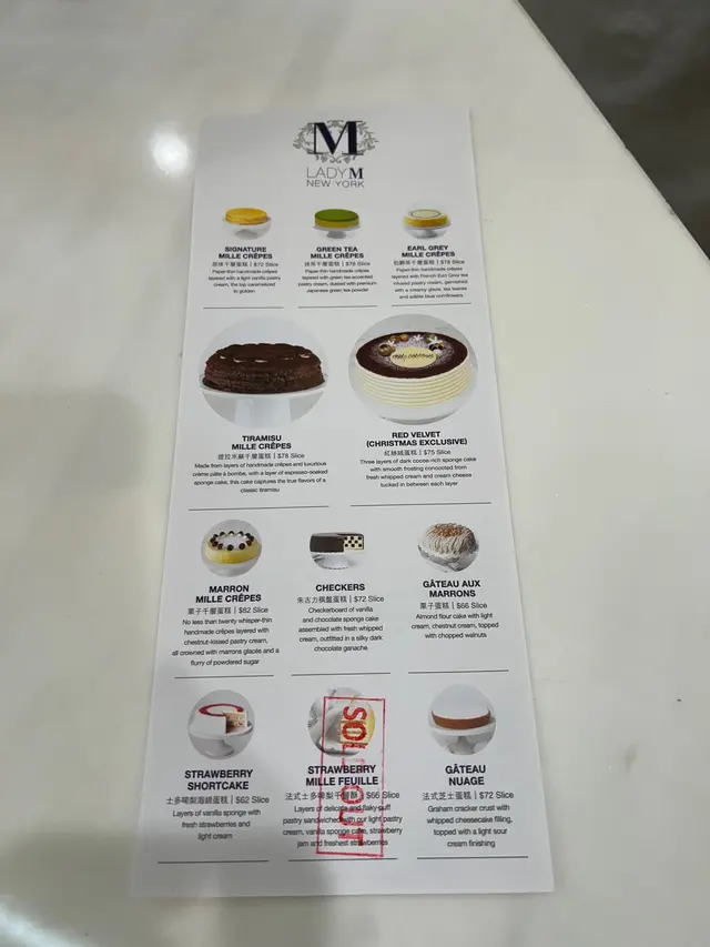 Lady M (铜锣湾) 网址: https://s.openrice.com/QrLS0c8G900 地址: 香港銅鑼灣勿地臣街1號時代廣場3樓Kiosk G 电话: +852 35860368