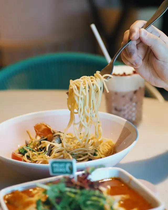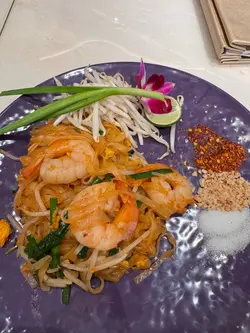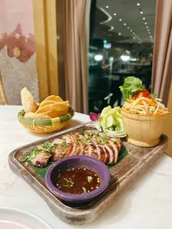 Lady nara系港威商场入面一间泰国菜餐厅,装修真系好梦幻✨,以粉红色为主调,仲有藤椅、秋千打卡位,窗边望出去就系维港海景🌊,感觉好chill又浪漫~当晚仲有枱客庆祝生日🎂,气氛热闹又开心!我嗌咗烧猪颈肉配青木瓜沙律,原价$148,啱啱遇上「泰赏感谢祭」限时优惠,只系$88,真系抵食😋!再加杯可乐$28,简单又满足。朋友就叫咗泰式炒河粉$118,份量足够,味道都唔错👍。🐷Lady nara 嘅烧猪颈肉真系香口又多汁,外层微焦脆脆地,咬落去仲有啲烟韧感,配埋青木瓜沙律嘅酸酸辣辣,啱晒味蕾💥!嗌返杯冰冻可乐一齐食,简直系完美配搭🥤。而且以$88优惠价食到原价$148嘅菜式,真系食得开心又唔肉赤😄~入座时每枱都会有一碗泰式虾片🦐,唔系免费嘅,会自动加$15入账单,虽然脆口好食,但冇讲清楚就收费有啲小伏😅。整体嚟讲,Lady nara系一间好啱打卡、睇海景、食泰菜嘅地方📸,如果想揾个靓靓环境同朋友聚餐,呢度绝对系唔错选择!…查看更多
