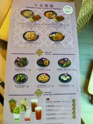 平日不用等位,一入座有一兜虾片叫做个会员价(即场登记app就得)$519(非会员价$688)嘅二人套餐套餐有:汤,用火热住嘅一锅汤,我哋加$10,拣咗大虾冬阴功汤,个汤好够热,有6边大虾,汤味够酸又够辣,好惹味👍🏻小食叫咗泰式炸虾饼,有3件,都算大件,上枱超级热辣辣,好食!主菜叫咗海南鸡半只,青咖哩鸡,各跟一碗饭海南鸡超级有惊喜,以为半只好少,估唔到都几大只,鸡肉嫩滑,鸡皮唔肥又爽脆,配个酱好正,酸酸辣辣,个酱够杰身,好挂汁!青咖哩都几好,正常发挥,只系相比之下就无咁出色。甜品加钱,拣咗芒果糯米饭,有半个芒果,好甜,椰酱咸咸地,配埋甜甜芒果加糯米饭,正!好满足😌套餐包两杯饮品,其中一杯叫咗热泰式奶茶,唔搞匀个底嘅糖浆,饮落甜度啱啱好。汤同甜品加咗钱,加埋一,埋单差唔多$700,唔平,不过好满足,好食,份量又足👍🏻要赞设计餐单𠮶个,有汤有小食有甜品,主菜色啲热门菜式(有啲餐厅套餐通常包啲唔太受欢迎嘅下栏菜式俾人技),份量好足,无话因为系套餐,份量就少过单点👍🏻另外,想赞一赞一个one length短黑发,高高瘦瘦嘅女侍应,全场最勤力最敬业就系佢👍🏻…查看更多