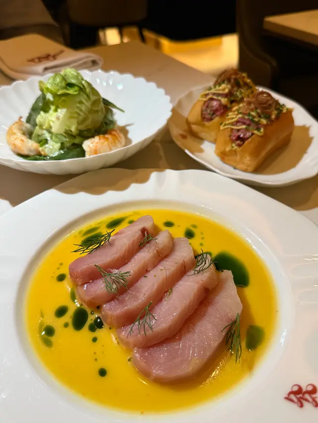 今次我帶左老婆去中環一間米芝蓮級法國餐廳食飯,得閒要氹下老婆先得既,呢間餐廳環境非常靚,入到去完全感受到高級餐廳既感覺,侍應服務態度非常好,客人全部都係貴賓既招待🥰Sharing Menu(每位$888)前菜SERIOLE油甘魚刺身前菜,同日式刺身唔同,佢係用dill oil做配搭,小小香甜薄荷既味道🐟CAVIAR魚子醬配黑松露意大利幼麵,高貴又鮮味既食材令人回味無窮😌SAUCISSON LYONNAIS法國里昂腸配上薯仔沙律,個腸幾有特色,少少臘腸feel🥗主菜VOL AU VENT LALA佢係一個酥皮既龍蝦批,裡面仲有其他海鮮,配合個黃酒醬汁整成,風味十足🦞POULET JAUNE佢地首先會原隻燒春雞比客人睇,然後再分半隻比客人,再加一鍋仔既日本越光米,個飯係一個焗油飯,用黎食雞就岩曬,燒春雞有d香草,隻雞皮脆肉嫩,肉質好掂🐥甜品PATISSERIE最後甜品係佢地既精緻甜品5選2,餐廳會攞曬5款比客人自己揀🧁飲品La Fiesta($148)Secret Garden($148)兩款酒都係比較清新易入口,其中Secret Garden幾有趣,係飲一啖果汁再飲一啖酒既飲法🍸呢間餐廳拍拖真係冇得輸,環境好好,店員服務好好,食物無論味道定係賣相都係一流,紀念日或者生日呢類大日子黎食番餐,氣氛相當好😉…查看更多