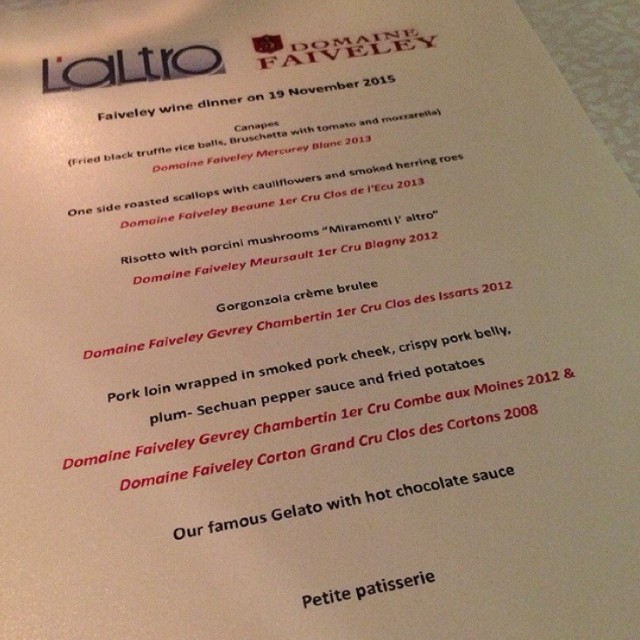 餐厅由米芝莲二星名厨Philippe Leveille开设,意大利文l'altro意为「the other」,就是旨在提供另类选择,为食客带来不一样的体验。法籍行政总厨Leveille擅长揉合法式烹调技巧于传统地道意式佳肴,供应他形容为「大胆进取(Greedy)、以牛油烹调(Buttered)、慷慨(Generous)及不假思索(Never Brainy)」的意菜。