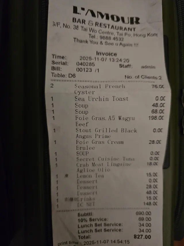 L'AMOUR (太和) 网上订位享低至75折优惠并赚Rice Dollars 网址: https://s.openrice.com/QrLS05u8A00 地址: 香港太和大埔太和路15號太和中心地下38號舖 电话: +852 98884532