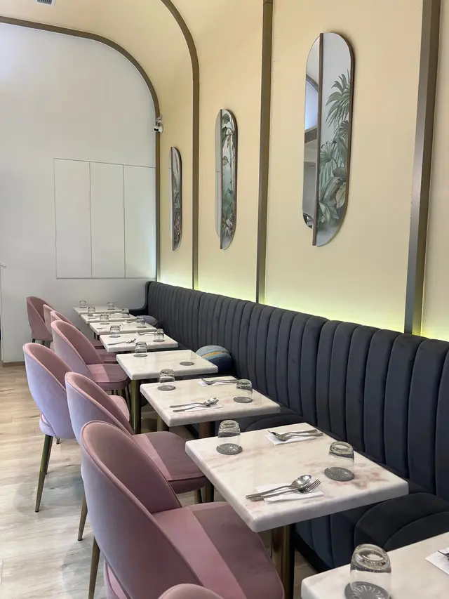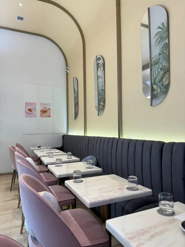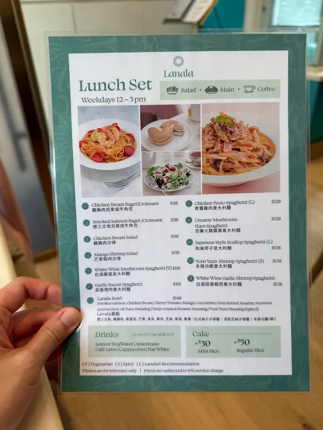 因為要訂生日蛋糕🎂,見到網上呢間嘅希臘乳酪芝士蛋糕好多好評,想去試左味先再訂。去到果陣咁啱係lunch hour,所以就順便喺度食埋個lunch啦🫣~店內裝修幾有風格,餐枱用左雲石紋。蛋糕櫥窗對面係一排sofa🛋️,上面有幾個馬卡龍cushion,張sofa好軟好淋,坐得好舒服💆🏼‍♀️。Lunch Set我揀左食和風帶子意大利麵($138),個價錢包埋salad🥗同一杯野飲☕️。個salad有車厘茄同菜,不過就好細碗,可以3啖食哂🤣。個和風帶子意大利麵被餐廳標左為Lanala’s recommendation,黎到果陣好熱,應該整完即刻上嘅😋。上面有4粒帶子,可惜意粉份量比較少,女仔食應該都還好,男仔食一定唔會夠飽😢。可能餐廳係想我地留肚食佢哋嘅蛋糕吧🫣。野飲我就揀左café latte☕️,有心心拉花🤍。杯咖啡好濃味,甘味好出。跟lunch set嗌蛋糕嘅話,可以+$30嗌迷仔size或者+$50嗌正常size。不過我都係為左試味,所以平平地揀左迷你size就算。我揀左迷你白桃玫瑰希臘乳酪芝士蛋糕🍰🍑🌹。個蛋糕口感同味道上一啲都唔單調。蛋糕上面桃紅色係玫瑰味啫喱🥄,中間果層係乳酪芝士夾集左啲白桃粒粒🍑,底果層係餅乾底🍪,同埋碟上面有蜜糖🍯。夾埋一齊食真係好好食😋😋😋。最後埋單計埋加一要$185一個人,食物份量唔多,性價比偏低,不過喺中環,都預左嘅🥹。但係我會推薦大家黎食佢個希臘乳酪芝士蛋糕,因為真係好食的😋。查看更多