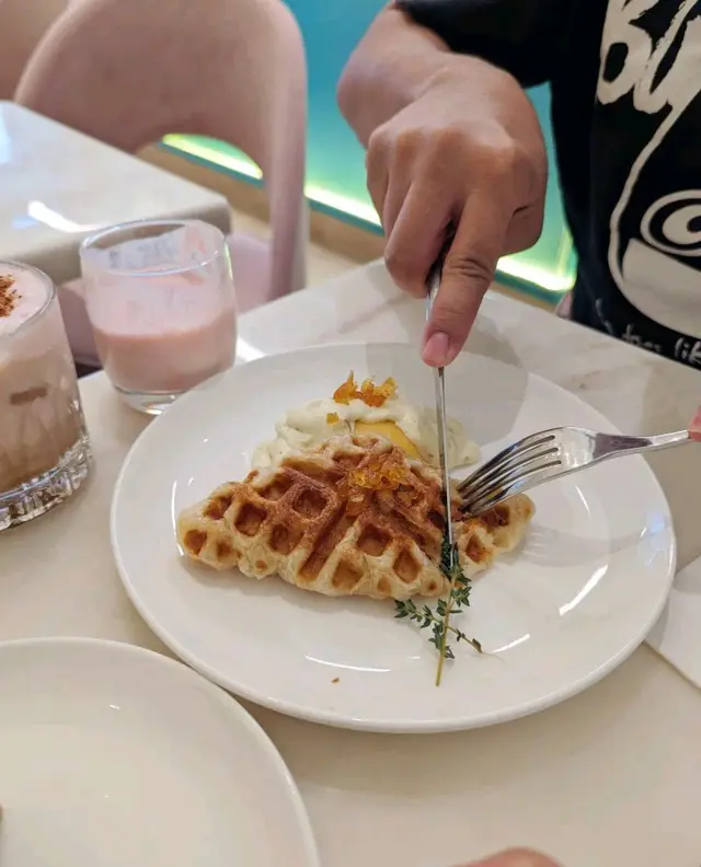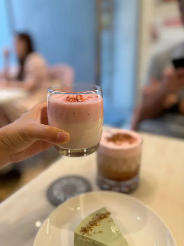 一入門口已經覺得好舒服好relaxing裝修雅致 灰藍色絨面梳化襯粉紅色絨面凳裝滿希臘乳酪芝士蛋既雪櫃 令人目不暇給最近推出櫻花系列 更特別充滿少女感.《櫻花奶蓋紅茶》面頭既奶蓋係粉紅色的上面用朱古力醬同可可粉畫咗一棟櫻花樹🌳🌸不禁哼起「如有天櫻花再開..」 好有意境奶蓋都係用乳酪打出嚟 同下層既紅茶好夾 飲落好順滑 亦唔會遮到茶香.《櫻花希臘乳酪特飲》乳酪香醇細膩 打出黎既質地好綿密 但感覺輕盈清爽 慢慢飲都仲係咁滑櫻花味有啲似杏仁味 剛好中和左乳酪既一絲微酸.只差一點點 慢左一步 同一系列的《抹茶櫻花希臘乳酪芝士蛋糕》已經售罄 .《牛油果希臘乳酪芝士蛋糕🥑🍰》嗌左同樣係粉嫩綠色嘅既牛油果口味用希臘乳酪製作嘅芝士蛋糕完全唔覺得膩感覺好light 食完都唔覺得罪疚加上牛油果 質感更加creamy 啖啖都帶有牛油果既獨特嘅香味中間有一層半透明嘅啫喱 層次分明亦帶出唔同口感.《抹茶草莓牛角包窩夫》肉眼已經睇到牛角包窩夫好酥脆食落更加係有聲出🥐🧇配埋綠茶醬同埋超級非常極之輕盈嘅抹茶奶油!!🍵確實係絕配 仲要係有回甘嘅抹茶香加埋士多啤梨乾 帶嚟一絲甜查看更多