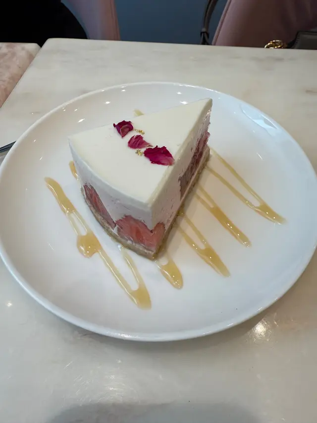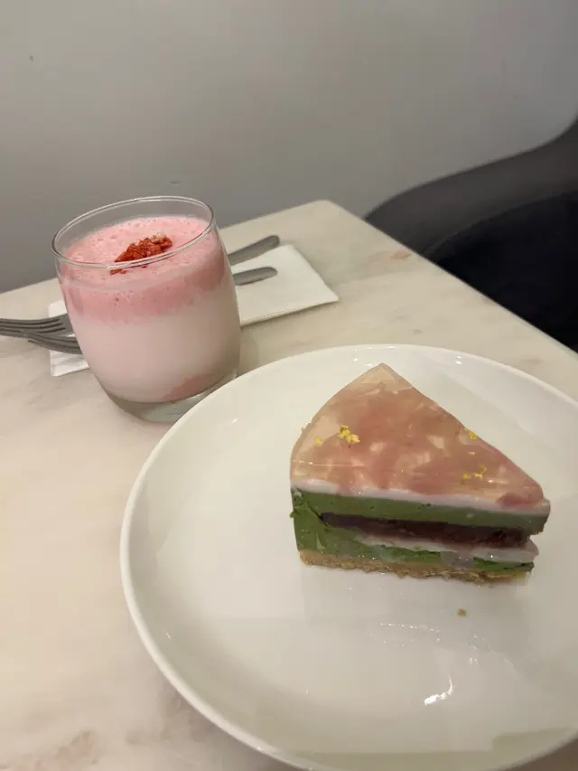 Cafe環境悠閑優雅,原來係首間賣輕盈低糖嘅希臘乳酪芝士蛋糕,好啱鐘意食甜品又怕肥嘅女生🥹。當日食咗全新推出嘅春夏櫻花系列蛋糕同特飲,全部都很不錯,相對健康之餘,味道清新而且一啲都唔膩。抹茶櫻花希臘乳酪芝士蛋糕⭐️⭐️⭐️⭐️用咗希臘乳酪做嘅芝士蛋糕,質感比平時嘅芝士蛋糕軟,乳酪味道突出,但唔係好甜。蛋糕口感層次分明;首層粉紅色啫喱同香滑櫻花Cream配搭特濃日本抹茶同希臘乳酪,中間仲有紅豆同麻糬,口感超豐富而且只係微甜。櫻花希臘乳酪特飲⭐️⭐️⭐️淡淡櫻花香結合希臘乳酪嘅濃郁柔滑口感,仲有些少士多啤梨乾,酸酸甜甜,令整體口感更加豐富。櫻花奶蓋茶⭐️⭐️融合茶香、櫻花香同奶香於一身,既有奶蓋嘅順滑綿密口感,又有櫻花茶嘅清新,好特別。柚子檸檬牛角包窩夫⭐️⭐️⭐️以牛角包為基底,搭配柚子同檸檬嘅酸甜風味,即叫即製,口感酥脆之餘帶有陣陣清新果香。查看更多