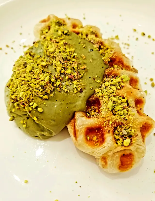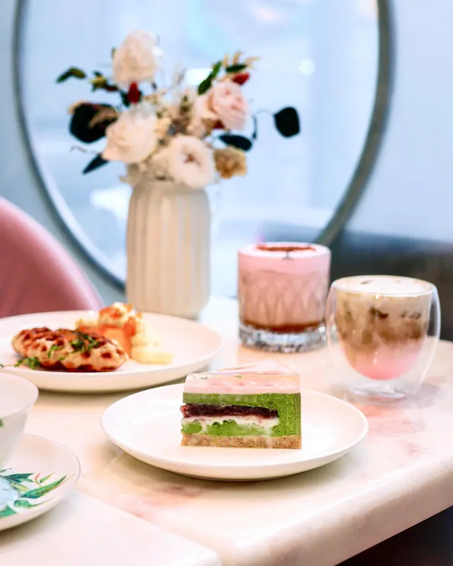 近期迷上有開心果嘅甜品。適逢今個weekend係母親節想請媽媽食個tea,知道中環呢間專賣希臘乳酪芝士餅嘅cafe有個下午茶set唔貴,帶佢嚟齊齊享受high tea時光Lanala Tea Set for Two♡Weekdays 3~6pm♡Matcha Sakura Greek Yogurt Cheese Cake 抹茶櫻花希臘乳酪芝士蛋糕-> 呢個媽咪點嘅蛋糕顏值擔當超夢幻!我試咗一啖,sor唔係我杯茶!抹茶層幾幼滑紅豆味道亦不俗,麻糬口感味同食開嘅有啲唔同,希臘乳酪層就...唔係咁合我口味,面頭櫻花啫喱略帶鹹味。反而媽媽覺得還不錯,佢就係唔太鍾意食太甜嘅蛋糕Pistachio Cream Croffle 濃香開心果醬牛角包窩夫-> 呢個反而有啲料到!Croffle焗得外鬆酥脆內軟亦有牛油香,切落去聲音清脆。食完我問店員、佢話開心果醬係homemade,唔怪得第一啖已感受到滿滿nutty味,帶點鹹幾濃郁的果仁味,有啲似花生醬嘅香,最終啲醬1滴都無淨咁俾我點曬嚟食Rose Latte玫瑰拿鐵-> 凍嘅latte幾滑帶啲玫瑰花香、甜味不多不少Sakura Milk Cap Tea櫻花奶蓋茶-> 呢杯打卡飲品味道都唔差,奶蓋幾厚、櫻花味清淡帶有朱古力甜味查看更多