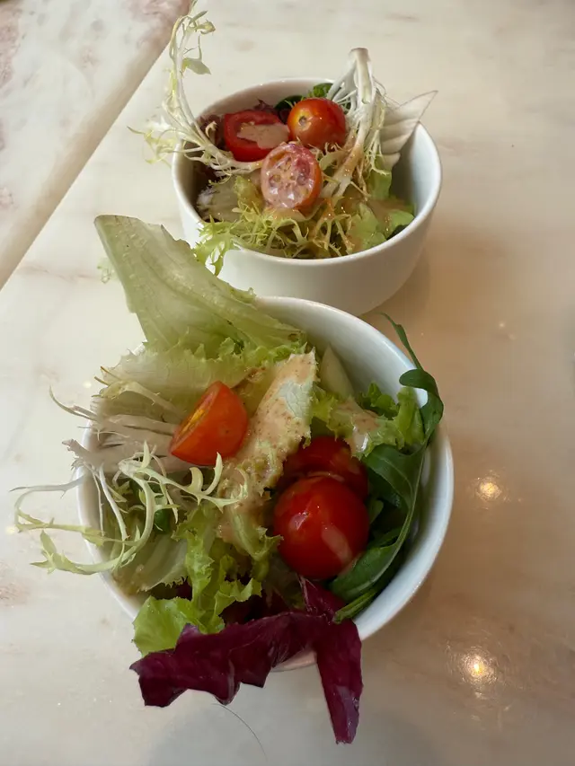 今日中環行到攰攰地,又好熱,見餐廳有位就入去左食個lunch。成間餐廳行粉紅少女風,位同位之間,唔係相隔好遠既,但都坐得舒服既。Lunch set 選擇多,包咗沙律,主菜,咖啡。我地一行2 個人,叫左2 個set。沙律不過不失,主菜我哋叫咗兩個意粉 🍝白酒雜菌意大利粉 🍝白酒蒜香蝦肉意大利粉。整體嚟講,兩個意粉都好味嘅 😋 不過口味比較較重,加咗過多嘅蒜蓉。最主要係,份量太少啦 ⚠️,女仔先勉強夠食 😉最後我哋仲加埋蛋糕,蛋糕真係好出色 👍 睇返過往啲食評,先至知道原來依間餐廳最出名嘅係蛋糕 ❗️下次嚟,真係可以主力食蛋糕🪇🪇🌟查看更多