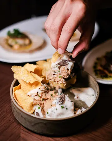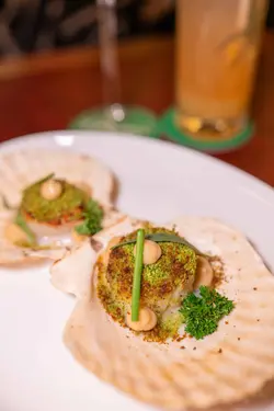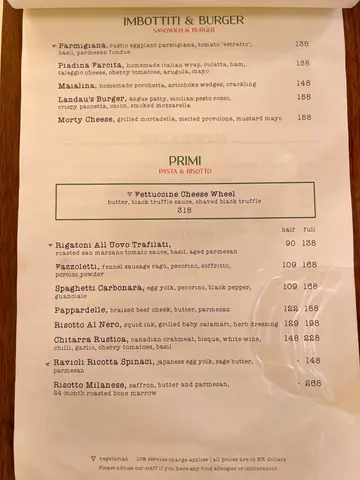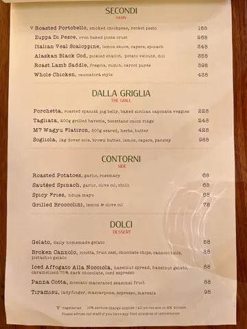 这间人气西餐厅历史悠久,位于湾仔的胡忠大厦,主打精致当代欧陆菜,融合地道及现代元素,严选每日新鲜优质的食材,所有食物及饮品均即叫即制。店内环境宽敞舒适,一边是意大利餐厅装潢华丽典雅且气派十足,有标志性的彩绘玻璃天花,有提供画碟及即影即有服务充满仪式感,适合庆祝生日或特别节日,另一边则是宴会厅专为派对和特别活动而设。周末的早午餐牌价钱性价比较高,有多款前菜、主食、沙律、三文治及蛋料理等,亦有两小时自由畅饮。Chef's Cold Cuts - $198Fellino Salami有浓郁的肉香及蒜香;Pistacchio Mortadella加入开心果风味;24个月熟成的圣丹尼尔火腿柔软湿润,有较低的咸度和浓郁的甜味余韵;还有香脆的茴香塔拉利咸饼及多汁的酸瓜。Uni/King Crab Scrambled Egg - $228丰腴的海胆入口即化,有丰富的鲜甜味;帝王蟹饱满鲜甜且有弹性;滑蛋软滑细致;自家制意式松饼外脆内松软,还有焦糖香的棕色奶油及清新的柠檬汁。Steak Al Pepe Verde - $298250g的澳洲黑安格斯腹胁牛排煎得外焦内粉嫩,细腻的大理石花纹鲜嫩多汁,有浓郁的牛肉风味,可蘸上青椒酱香辣鲜甜,还有金黄酥脆的薯条撒上调味粉,可蘸上茄汁。Fettuccine Cheese Wheel - $318席前料理的车轮芝士意大利面,意大利宽条面弹牙有嚼劲且有麦香,半溶化的芝士浓郁咸香,更有拉丝效果,有阵阵黑松露酱的飘香,还有新鲜刨的黑松露片慢慢释出香气。Broken Cannolo - $88幼滑细腻的开心果意大利雪糕有浓郁的坚果香气,蓬松的乳清芝士软嫩轻盈 ,又有朱古力脆片及薄脆饼酥脆增添口感,再撒上果皮碎碎。Panna Cotta - $88意式奶冻滑顺柔滑,充满浓郁的奶香,时令水果粒以Moscato葡萄酒浸渍甜美清爽,还有细致柔软的意式蛋白霜带点酸爽。Rose Apple Fizz - $78玫瑰苹果气泡饮以梳打水为基底,有酸甜的青苹果、苹果汁及柠檬汁,又有玫瑰糖浆增添淡淡花香。Scarlet Buck - $78以姜汁汽水为基底,有酸甜的士多啤梨、菠萝及柠檬汁,又有椰子糖浆带有淡淡焦糖香气,薄荷增添清爽感。…查看更多