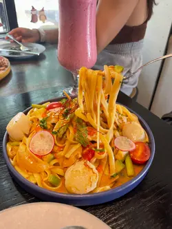 🇭🇰 Sheung Wan 上环|Lascar Lane At this discret corner sits a cafe ☕️ during the day and a bar 🍷 at night! They offer a wide variety of brunch and dessert that makes you wanna come back again to try the others! Save this as your next brunch date! Here are what went into our stomach: •𝐏𝐚𝐧-𝐟𝐫𝐢𝐞𝐝 𝐒𝐜𝐚𝐥𝐥𝐨𝐩 𝐋𝐨𝐛𝐬𝐭𝐞𝐫 𝐒𝐚𝐮𝐜𝐞 𝐋𝐢𝐧𝐠𝐮𝐢𝐧𝐞 𝐰𝐢𝐭𝐡 𝐒𝐚𝐤𝐮𝐫𝐚 𝐒𝐡𝐫𝐢𝐦𝐩 香煎带子配樱花虾龙虾汁扁意粉The portion of it is so large! 😲 The lobster sauce is also so rich that every bite of the linguine is so satisfying! Enjoy the scallop when it’s still hot! 😋•𝐁𝐥𝐮𝐞𝐛𝐞𝐫𝐫𝐲 𝐒𝐦𝐨𝐤𝐞 𝐒𝐚𝐥𝐦𝐨𝐧 𝐆𝐚𝐫𝐝𝐞𝐧 𝐒𝐚𝐥𝐚𝐝 蓝莓烟三文鱼田园沙律This refreshing salad is so large! It is filled with veggies and sweet blueberries! 🫐 The salmon are also flavourful! •𝐏𝐚𝐧 𝐅𝐫𝐢𝐞𝐝 𝐅𝐫𝐞𝐬𝐡 𝐖𝐢𝐥𝐝 𝐌𝐮𝐬𝐡𝐫𝐨𝐨𝐦 𝐰𝐢𝐭𝐡 𝐁𝐮𝐭𝐭𝐞𝐫 牛油炒新鲜杂菌The butter enhanced the mushroom 🍄🟫 flavour to the next level! Definitely a dish of choice to share with friends! Great portions that it is best to share among your group! •𝐌𝐢𝐱 𝐅𝐫𝐮𝐢𝐭 𝐏𝐚𝐧𝐜𝐚𝐤𝐞 𝐰𝐢𝐭𝐡 𝐇𝐨𝐧𝐞𝐲 𝐒𝐚𝐮𝐜𝐞 杂果香软煎饼The honey 🍯 added a layer of sweetness for the dessert! I prefer to indulge in the sweetness from ice cream, honey and the pancake 🥞 every bites! Pure happiness! •𝐌𝐢𝐱𝐞𝐝 𝐁𝐞𝐫𝐫𝐲 𝐊𝐰𝐮𝐧 𝐘𝐮𝐦 𝐓𝐞𝐚 & 𝐏𝐢𝐬𝐭𝐚𝐜𝐡𝐢𝐨 𝐋𝐚𝐭𝐭𝐞 杂莓观音茶 & 香浓开心果咖啡It is a refreshing take to combine berry with Kwun Yum tea, 🫖 and it didn’t fail! It is not too sweet as well! The pistachio latte is my favourite since it is filled with pistachio flavour and I almost got another one! 🥹📍Shop A, G/F, Pong Fai Building, 2-8 Lok Ku Road, Sheung Wan💲Price per person: $236 + 10% service charge…查看更多