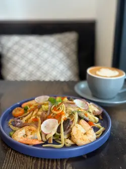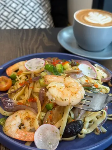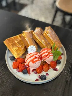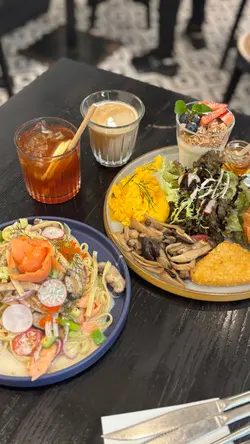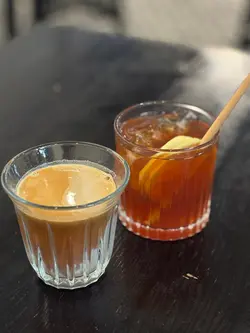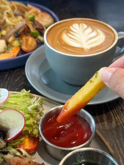 在摩罗街逛累了,转进荷李活道的Lascar Lane,立刻感受到闹中取静的悠闲。简约木质风,加上暖色灯光,让人觉得很放松。 午餐点了鹿儿岛特级梅头猪扒$148,香橙红酒汁很特别,酸甜又带点红酒香,猪扒也够嫩。薯条炸得酥脆,沙律清爽,还附两种蘸酱,可以换换口味。另一份是丰盛的全日早餐$138,香肠、培根、炒蛋、面包、沙律、烤番茄,什么都有,吃完超饱。 饮品方面,我们选择了芒果热情果沙冰$58和热情果鸡尾酒$98。芒果热情果沙冰,口感绵密,清爽解腻,让人暑气全消。热情果鸡尾酒则更具特色,以新鲜水果和香草点缀,色彩鲜艳诱人,入口带有微醺的浪漫,为这顿午餐增添了一丝情调。 最后的杂果香软煎饼$88 很适合share,煎饼口感扎实,配上士多啤梨、蓝莓和雪糕,酸甜冰凉,口感丰富。摆盘也很精致,撒了饼干屑和玫瑰花瓣,看得出店家的用心。 Lascar Lane不只是一家咖啡店,更像一个有故事的角落。这里,可以放慢脚步,喝杯咖啡,感受上环的街头氛围。无论是和朋友聊天,还是自己放空,都是个不错的选择。 …查看更多