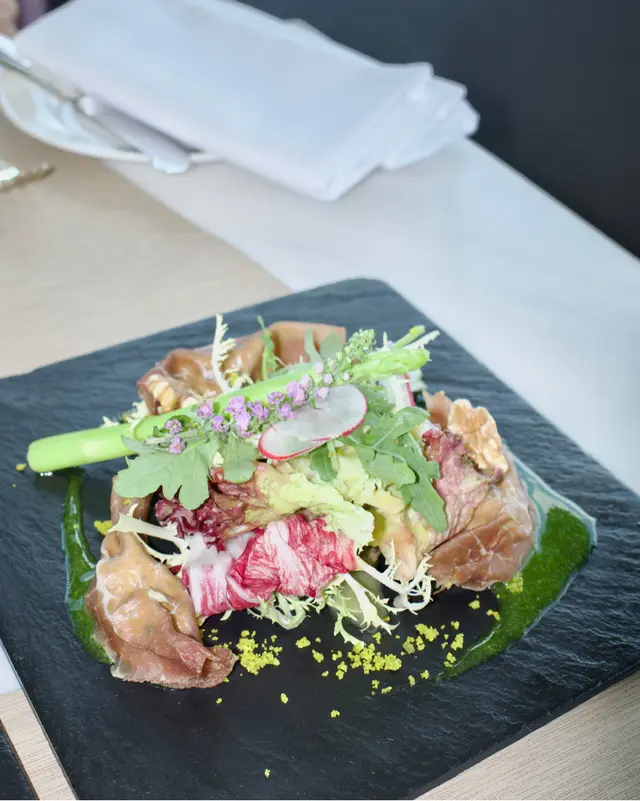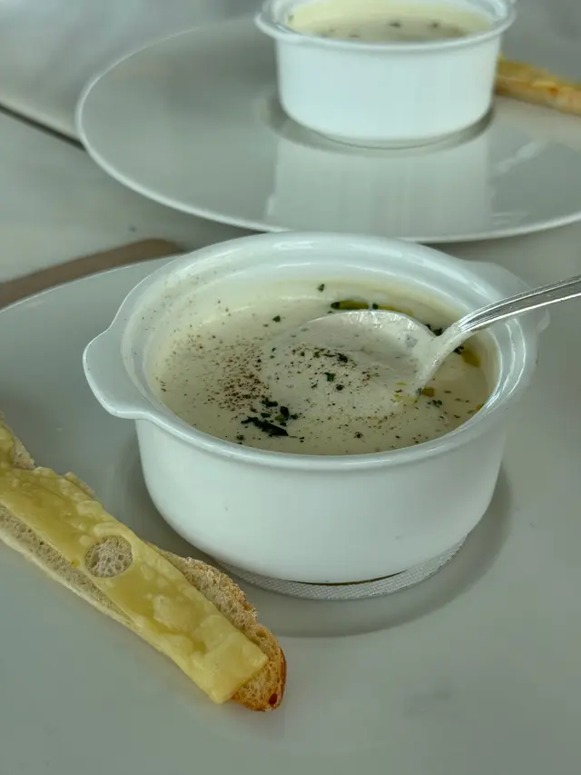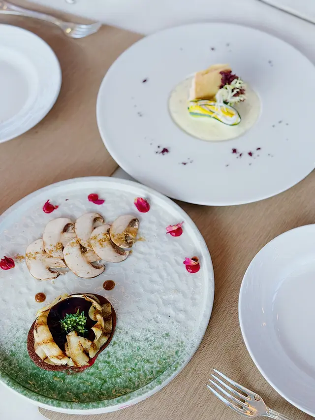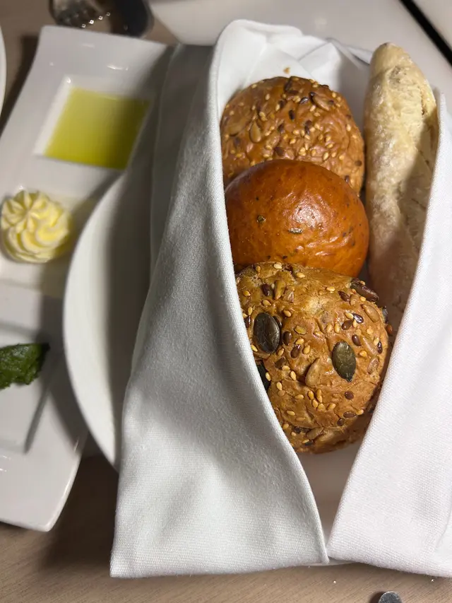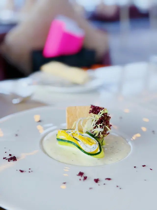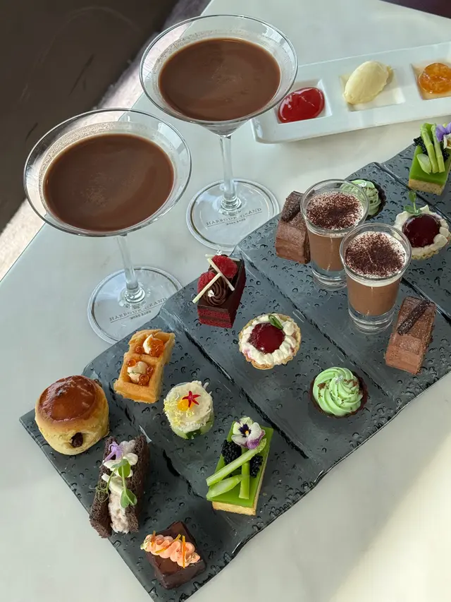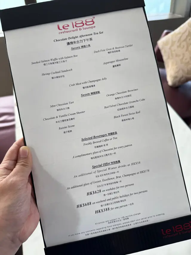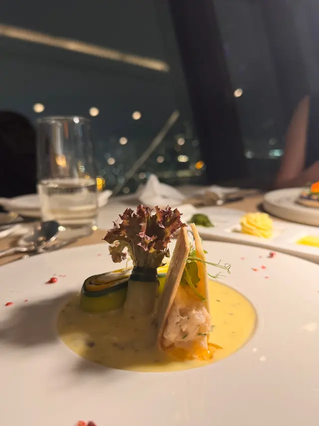 係港島海逸君綽酒店41樓既Le 188° 餐廳及酒廊,有靚維港夜景同Live Music🎶,氣氛恰到好處,最緊要唔會過分喧鬧,同朋友聚會定浪漫晚餐,傾計食野都好岩☺️.🍽️餐前小食:慢煮鮑魚豉油汁啫喱冷盤鮑魚慢煮處理過,質地爽口彈牙,入口軟滑,有微微鮮甜~配左豉油汁啫喱,醬汁甜而不膩,真係好回味無窮😋.前菜(二選一):🍽️海鮮幕絲脆餅配意大利青瓜千層及白酒忌廉汁海鮮mousse入口細膩,配清爽既意大利青瓜千層,好清新既口感;白酒忌廉汁濃而不重,同海鮮嘅鮮甜完美融合,好refreshing😜.🍽️松露鴨肝凍批配蘑菇及櫻桃啫喱鴨肝質感滑順,入口即化,松露嘅濃郁香味同蘑菇、酸甜既櫻桃啫喱形成完美搭配,層次分明,最愛係佢😝.🍽️是日餐湯:白松露蘑菇湯 白松露幽香撲鼻,味濃而不膩,配芝士法包條烤到好香脆,芝士鹹香同濃湯好match🤩.主菜:🍽️意大利羊奶芝士燴飯(配櫻桃汁、蘋果胡椒慕絲、櫻桃慕絲及紅菜頭脆片)燴飯份量十足,飯粒煮到 al dente,咬口恰到好處,羊奶芝士醬汁 creamy 得來無奶騷味,入口順滑~配櫻桃汁同蘋果胡椒慕絲, 令味道更有層次🥳.🍽️香烤美國和牛牛腩扒(配雜蔬菜、新馬鈴薯及紅酒燒汁)和牛牛腩扒烤到岩岩好,牛味濃郁但肉質軟嫩,唔會韌口😮紅酒燒汁令肉香濃縮左之外,令配菜同新薯更惹味~.🍽️甜品:牛奶朱古力蛋糕 蛋糕糕身質地鬆軟🍰朱古力風味濃郁但甜度適中,唔會過膩,配搭細膩嘅奶香,完美為整餐畫上句號💜…查看更多