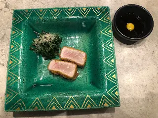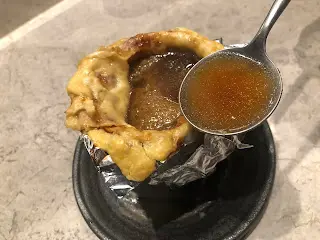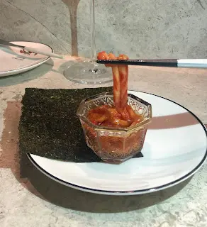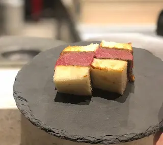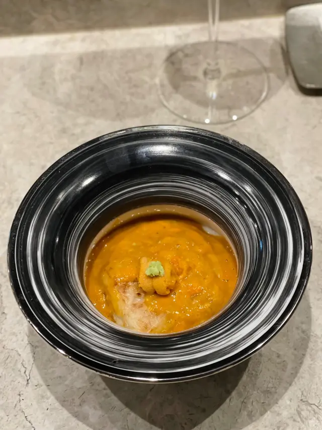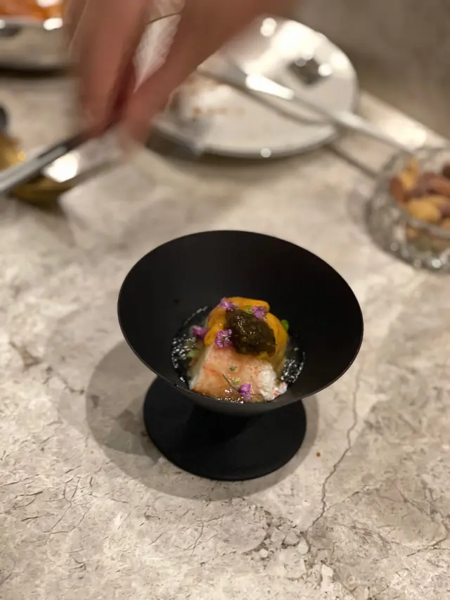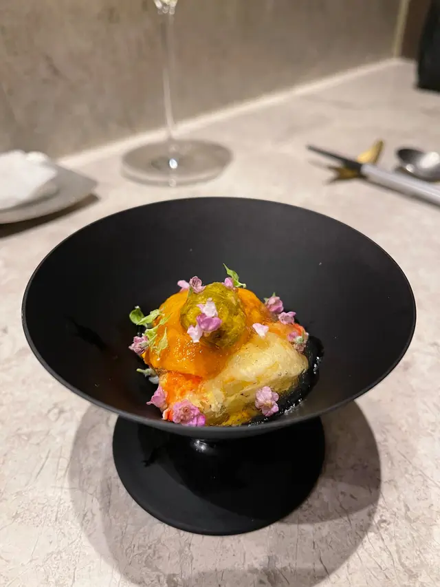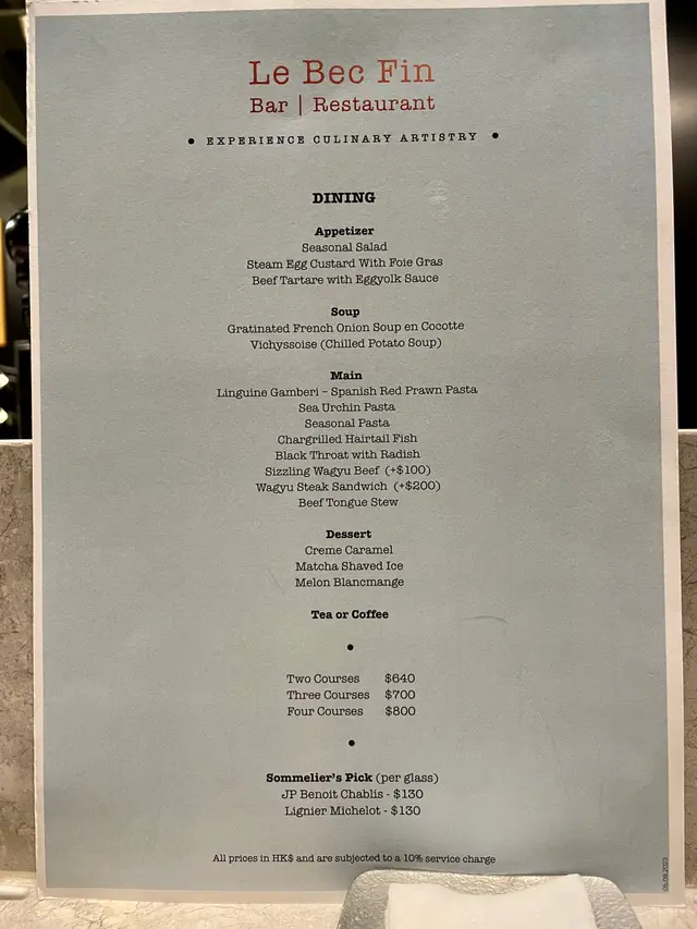 Le Bec Fin 北角French-Japanese hidden gem with cozy kitchen counters sitting! In love with their Spanish Red Prawn Pasta😗probably one of the best in town! We chose 4 courses meal $800, for appetizers we ordered Salmon Terrine, very unique flavor and nice plating. My friend had steamed egg & fois gras, very soft and silky texture! Main course we ordered Spanish Red Prawn Linguine, the sauce soaked up on every single linguiniiiii, very rich and flavourful, the amount of red prawn is very generous too💕we also order sea urchin Pasta, taste fresh and rich uni flavor! Menu:Foie gras egg custard with truffleGratinated french onion soup en cocotteSea urchin pasta/Red prawn pasta