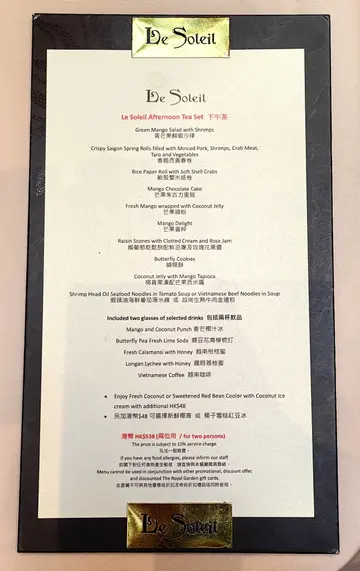 去过咁多酒店,原来从来未去过帝苑酒店,所以依日同老公前来试吓佢哋推出嘅「法越风味下午茶」。味道其实都唔错,咸甜点有一定程度嘅水平,环境宁静,灯光比较昏暗,不过坐得好舒服。如果想静静哋饮杯嘢、食吓嘢,建议可以前来试吓~咸点:猪柳米纸卷香脆虾多士配蒜香蛋黄酱越式扎肉迷你法包甜点:抹茶歌剧院蛋糕玛德莲蛋糕越式咖啡法式焦糖炖蛋焗葡萄干松饼配鲜忌廉及玫瑰花果酱芒果拿破仑椰子奶油冻配芒果西米露每人可选一款:虾头油海鲜番茄汤米线 或 越南生熟牛肉金边粉包括两杯饮品:香芒椰汁冰、蝶豆花、青柠梳打、越南柑桔蜜、龙眼荔枝蜜、越南咖啡…查看更多