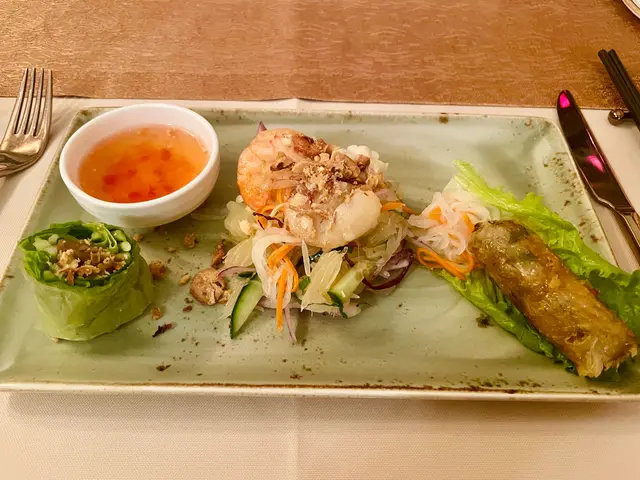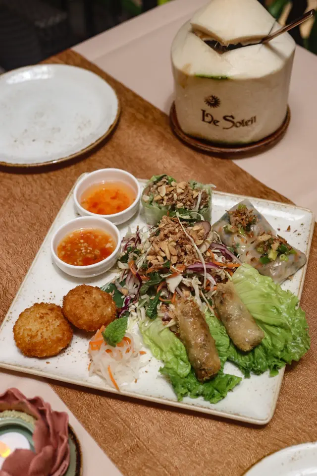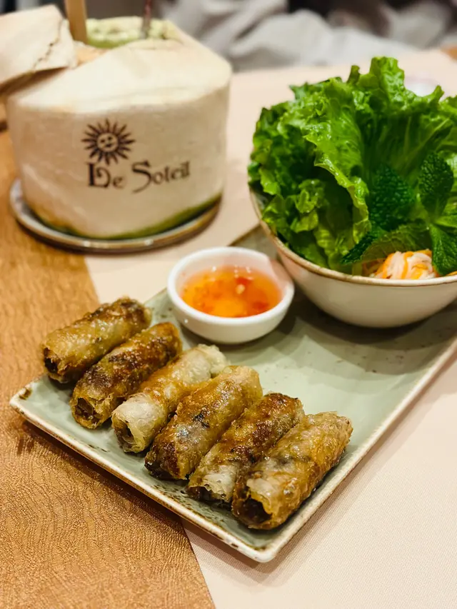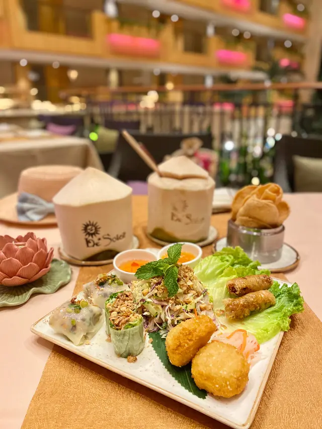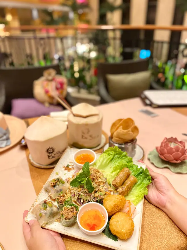 去過咁多酒店,原來從來未去過帝苑酒店,所以依日同老公前來試吓佢哋推出嘅「法越風味下午茶」。味道其實都唔錯,鹹甜點有一定程度嘅水平,環境寧靜,燈光比較昏暗,不過坐得好舒服。如果想靜靜哋飲杯嘢、食吓嘢,建議可以前來試吓~鹹點:豬柳米紙卷香脆蝦多士配蒜香蛋黃醬越式扎肉迷你法包甜點:抹茶歌劇院蛋糕瑪德蓮蛋糕越式咖啡法式焦糖燉蛋焗葡萄乾鬆餅配鮮忌廉及玫瑰花果醬芒果拿破崙椰子奶油凍配芒果西米露每人可選一款:蝦頭油海鮮番茄湯米線 或 越南生熟牛肉金邊粉包括兩杯飲品:香芒椰汁冰、蝶豆花、青檸梳打、越南柑桔蜜、龍眼荔枝蜜、越南咖啡…查看更多