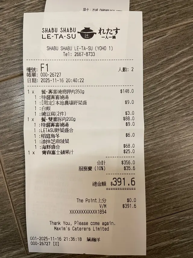 LE-TA-SU 一人一鍋 (元朗) 网址: https://s.openrice.com/QrLS0RJuF00 地址: 香港元朗朗日路9號形點 I 1樓1023-1025號舖 电话: +852 26678733