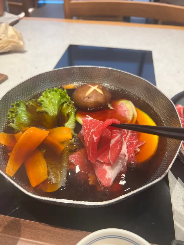 此外,還有素食或輕食套餐,共12種野菜,包括蘿蔔、南瓜、綠毛菜和油麥菜苗等,連湯底都為素食者特別準備,採用充滿昆布鮮味和綠茶香氣的全素昆布湯底。