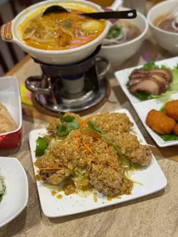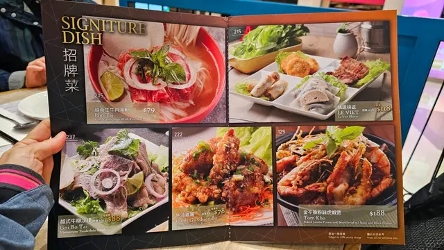 每次行开尖沙咀,都钟意去The One揾食🤤因里面有好多高回头率嘅餐厅!就好似新派越菜 🌸 Le Viet 🌸 咁~餐厅环境开扬,简约舒适,提供多款创意、精致越菜,而且价钱贴地,抵食足料,上星期同家人又食到好嘢,当中新出嘅「#海鲜酸辣锅」同「#越式雪花牛汤粉」好得👍🏻🥘 【新】海鲜帽子酸辣锅 $298哗!呢个海鲜锅好有视觉震撼👀包括:越南大头虾🦐、大扇贝、鱿鱼🦑、大蚬等围绕著极具越南特色香料嘅酸辣浓汤🔥开胃、酸爽、惹味!🍜 【新】越式雪花牛汤粉 $92呢款创新小黄牛越南Pho,牛味比一般牛肉浓郁,紧实富口感,细滑河粉配埋清澈汤底,好有质素‼️🥗 青木瓜大虾鸡丝沙律 $88沙律好清新,配上酱汁,份外开胃!🌯 香茅猪颈肉米纸卷 $58外皮薄身烟韧,猪颈肉弹牙,沾上酱汁,好有嚼劲~🌮 扎肉蒸粉包 $82口感软糯又多馅,札肉够弹牙,加埋表面配料及秘制汁,好有风味~🐔 越式牛油鸡翼 $78鸡翼炸得金黄香脆,大量炸蒜舖面,牛油味浓,肉质仍能保持嫩滑多汁!🍮 焦糖炖蛋 $40心心造型好精致,焦糖脆卜卜,炖蛋香浓嫩滑。🍘 香芒糯米饭 $68糯米及紫糯米口感软糯,芒果香甜多汁,配埋浓稠椰酱,满满泰风!🍹 百香果绿茶特饮 $36百香果香气浓郁,果肉有咬口,酸甜可口。🍹 鲜椰青椰果特饮 $45椰青水透口凉,椰果烟韧,越饮越爽!…查看更多