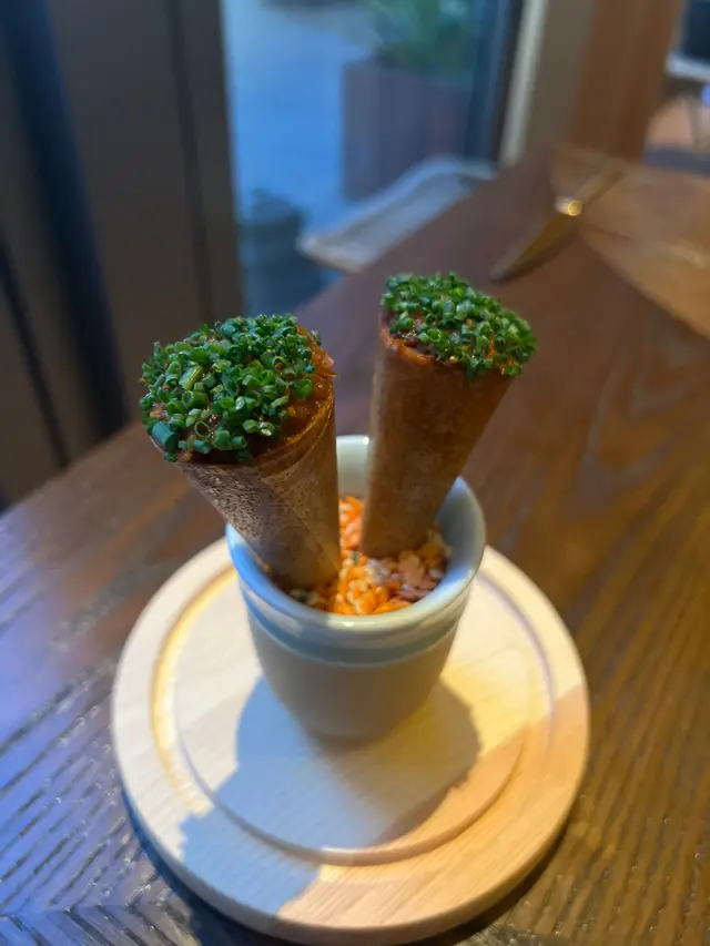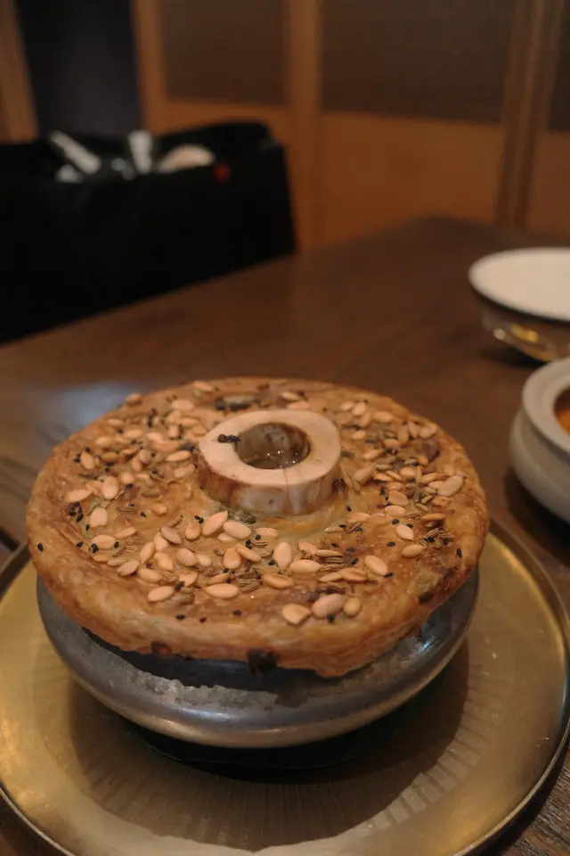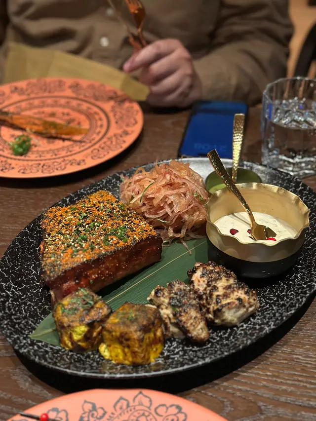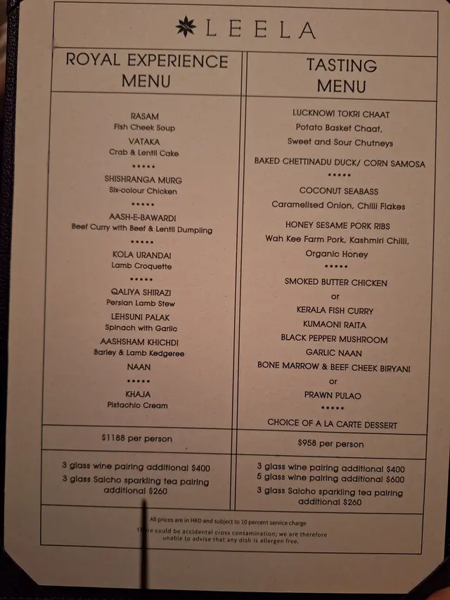 Having tried Chaat a few years back we have good memories about the India cuisine Chef Manav Tuli has mastered. Hearing that he had left and now starting his own restaurant Leela, today we came to Lee Garden Three in Causeway Bay to see what magic he had prepared for us.Passing through a corridor the staff leads us to a booth located at a corner which offers good privacy. There are also tables along the windows looking down at the busy district. Using plenty of wood in the decor and furniture, it has warmth and relaxing ambience, with lots of details of subtle luxurious sophistication.We order the Royal Experience Menu ($1,188 each) along with Saicho sparkling tea pairing ($260 each). To start, there is a complimentary papadum, made with wheat flour, having a nice crunchiness. On the side is garlic chutney for dipping, having good flavours and the yogurt helps give a bit of acidity to stimulate appetite. A good start.The first course is Rasam, a type of spicy Indian soup-like dish made with warming spices. There are noticeable flavors of tamarind, with good, refreshing acidity, which is highly appetizing, together with some fish cheek meat. The soup is also medicinal in properties, helping digestion and other health problems according to local wisdom.The second course is Vataka, which is an ancient dish without recipe. Through research, Chef Manav has re-created the dish. Essentially a deep-fried crab and lentil cake with tomato chutney underneath, it has nice flavors and does not feel any greasiness. The edible flower on top adds an extra layer of appeal on the visual too.The third course is Shishranga Murg. The dish is a favorite of Shah Jahan, the Mughal emperor who built Taj Mahal in memory of his wife. Virtually translating to ‘six-color’ chicken, it is like a dry curry, with the six colors coming from egg white, egg yolk, pistachio, almond, apricot, and raisins. Together with some lacha naan, the chicken is tender, delicious with complex flavors, and I can see why the emperor liked it so much.The fourth course is Aash-e-Bawardi. Served in the oval-shaped bowl are some delicious beef curry stews, with mint and other herbs plus some yogurt, and a beef and lentil dumpling on top. The dough of the dumpling is a bit thick if comparing with the Chinese version, but the taste is certainly amazing. The fifth course is Kola Urandai, traditional mutton meatballs designed as food for the princes on the marching when they go to war. There is a poet which tells the story of a prince who fell off a cliff and survived while waiting for help for three days because of having this as provision. Looking like lamb croquette, with a crisp crust and soft inside, it has more spiciness from the masala mixed in the meat. Very good in taste.Then comes the main courses. Qaliya Shirazi is a Persian lamb stew, originated from Shiraz in Iran. The meaty lamb rack is braised to great tenderness, with the curry permeating appealing aromas of spice and ripe tomatoes.Lehsuni Palak is meshed spinach added with generous amounts of garlic, a very smooth and delicious curry to enjoy with bread. This is my wife’s favourite one.And Aashsham Khichdi is a stew made with barley and lamb kedgeree, with flakes of mutton and the barley providing different texture, and again very delicious with complex flavours.To go with the different main courses there are some freshly baked Naan on the side. One of the best Naan I have tried, the bread is soft, not drying out on the inside, and does not have any floury notes that will surface if the bread is not baked sufficiently. Really wonderful.The final course is Khaja, a type of Indian deep-fried pastry, with the chef piping some pistachio cream on top and decorated with edible flowers. The creamy smooth pistachio puree has good intense flavours, not too sweet, with everything in good balance.Service is good, with the staff friendly and eager to help, explaining the dishes in detail to make us more engaged with the dinner and the food. The bill on the night is $3,269 which is of good value. Perhaps next time we should also try its tasting menu to compare.…查看更多