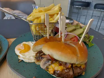 香港沙田万怡酒店30楼的LEVELthirty观景酒廊沙田区内唯一的高空酒吧坐拥沙田城门河及马场周边开扬景色, 在广阔景观之下享用著酒廊美酒、香槟及中西式滋味佳肴下,有户外露天打卡位,由观赏日落时份到迷人夜景用餐,十分适合情侣、同事朋友摸酒杯底放松闲谈聚餐。 晚市套餐仲低至HK$248-$508 👨🍳套餐包含有餐包、餐汤、主食、甜品,性价比高,酒店级价钱尚算亲民。 🍲是日餐汤是南瓜汤,浓郁南瓜甜味加了一份滑溜奶香,入口柔滑绵绵。配搭几款酒店级新鲜法国面包,外酥内软面粉香突出。 🥗前菜系鲜淮山露笋沙律Asparagus and Fresh Yam Salad夏日炎炎令人更感觉清新健康,口感层次丰富,淮山露笋配搭爽口清甜,沙律菜新鲜令人食唔停口。🥩香煎南非M9和牛肉眼扒配烧蒜汁Grilled South-African M9 Wagyu Rib Eye Steak with Roasted Garlic Sauce拣左7成熟上台,一份有三块切件肉眼扒。牛扒经香煎外层焦香有口感,食落充满牛脂香味,内层口感带嫩滑,如食得生的建议叫5成会更加嫩口甘香。🍝虾汁海鲜扁意粉Linguine with Seafood and Shrimp Sauce整体水准属于正常表现,相对肉眼扒较清淡,但份量有诚意。配菜有两块薄脆片以及青廿、鱿鱼及鲜虾,新鲜带微微甜度,香草挂汁调味,拌匀后会更香口入味。🧁最后甜品有惊喜! 烩法国小香梨配开心果费车雪小蛋糕Poached Mini French Pear with Pistachio Financier酒店级精品甜点一定无得输,小香梨鲜甜加点开心果碎增加口感,费车雪小蛋糕软绵绵系一个绝配~而家酒吧正做梗一个2.5小时无限畅饮优惠🍻只需$198就可以饮到Drink Menu多款美酒!…查看更多