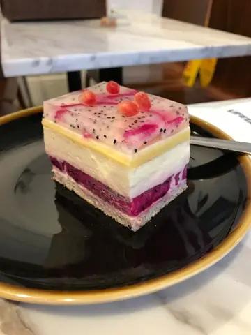 (最爱动物)我们点了火龙果柠檬芝士蛋糕及竹炭黑芝麻蛋糕🍰,又红又黑