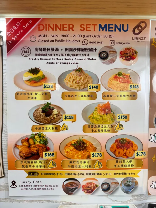 Linkzy Cafe (上环) 网上订位即赚Rice Dollars 网址: https://s.openrice.com/QrLS0PwqD00 地址: 香港上環永樂街1-3號世瑛大廈2樓203室 电话: +852 84029451