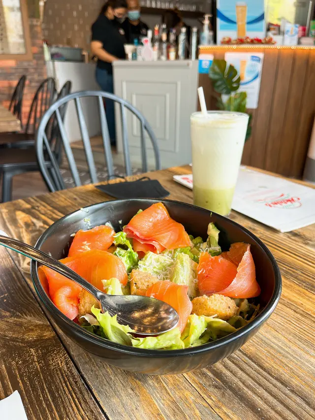 Little Mario's Pizzeria (Life@KCC )位於葵涌葵昌路72-76號Life@KCC地下G02號舖,今日同同事食晏,附近又唔知有咩食好,又唔想食茶餐廳,同事話試過呢間,都幾ok,唔需要諗就過咗來解決午餐嘅需求!叫咗2 set lunch 一個係炸魚薯條,另一個係辣肉腸薄餅。首先上咗兩個湯,之後同同事一人點咗一杯咖啡同埋凍檸茶!炸魚薯條嘅份量都幾多下,9寸噶辣肉腸薄餅,芝士味比較香濃,薄餅中間比較濕潤,邊邊位好脆又好煙韌!好彩早咗去,如果唔係又要等位啦!🤭…查看更多