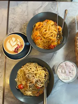 沙嗲牛肉出前一丁配牛角包 $41送到枱已经嗅到香浓的沙嗲味道,沙嗲是有一点辣味,像是马拉或这是泰国的沙嗲,味道配上出前一丁极度合衬。牛角包松软可口,配上牛油,简直是人间极品。香脆牛角包中间放上惹味的沙嗲牛肉是一个新式的食法。这里值得一赞的是,麻油是让客人自己放。杂菌芝士奄列茄汁焗豆配迷你牛角包 $36一切开奄列便有香浓的芝士味道散发出来,蛋包裹著杂菌配上芝士的香味,是一个不错的早餐。有沙律菜在旁,让早餐也变得健康。玫瑰咖啡 加$9吸一口咖啡有淡淡的玫瑰香在口中,跟咖啡融合。芋头鲜奶 加$9微甜的芋头鲜奶加给我今日的好心情。…Read More