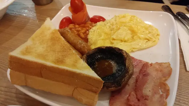 成日都經過觀塘呢間CAFE都幾多好評, 之前終於食過覺得幾抵食, 點知已經執左...不過既然係飲食誌, 執左都紀錄一下啦地方都幾闊落呀, 不過可能有D難搵所以冇乜人...全日早餐都幾健康, 有烤菇又有腸仔同三文魚, 最欣賞佢地個炒蛋係炒得好滑嫁!超大份既炒蛋意粉! 又係好滑溜既炒蛋, 同埋意粉, 雖然唔係好多野, 係好有質素呀!生菜就咁烚熟有D唔靚, 不過分開左豉油上都幾聰明既~服務其實都好好, 因為侍應都好有禮貌, 會照顧你既需要~…查看更多