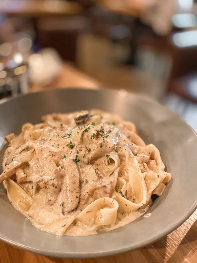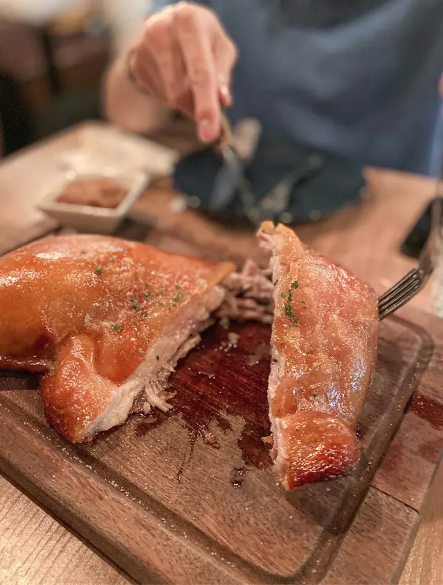 絕對是為了這個乳豬脾而來的看到很多食評都說這道菜很讚這才想起有朋友很久之前便推薦這間餐廳加上環境和氣氛也很適合情侶約會呢~◈ 西班牙脆皮乳豬 ($268)店裏的招牌菜 要等約20分鐘時間上菜時還熱騰騰的 是即烤即上切開油脂即刻湧現出來肉質很嫩滑 表面撒上海鹽來調味還有沾上肉桂醬 本來覺得這配搭怪怪的結果意料之外的好吃 微甜的減低油膩感且不得不說外皮超香脆!!!有人跟我一樣喜歡吃乳豬皮嗎~不過肉跟肥膏和皮的比例是1:1:1😂真的超肥美 肥美到感覺像吃油似的...頭兩口還蠻好吃的 但之後油膩感太重了😭回家後肚子一直想反胃的所以建議四人分享會比較好...◈ 黑松露蘑菇意大利麵 ($178)超喜歡這道菜的!手工意粉很有咬口 吃到淡淡蛋香醬汁超濃稠的 每條意粉都非常掛汁香濃的黑松露和奶香每一啖都好幸福一定要試個意粉🤤◈ 白酒蒜蓉大蜆 ($78)半份的份量足夠兩人分享了每隻蜆都很大隻 吃到啖啖肉不過有一半以上都有沙的😭且煮得不太入味喔 可省略不點整體可一試 價錢有點少貴呢 意大利菜來說水準中等 但乳豬對我而言太重口味了 適合喜歡吃肥膏的人士~查看更多