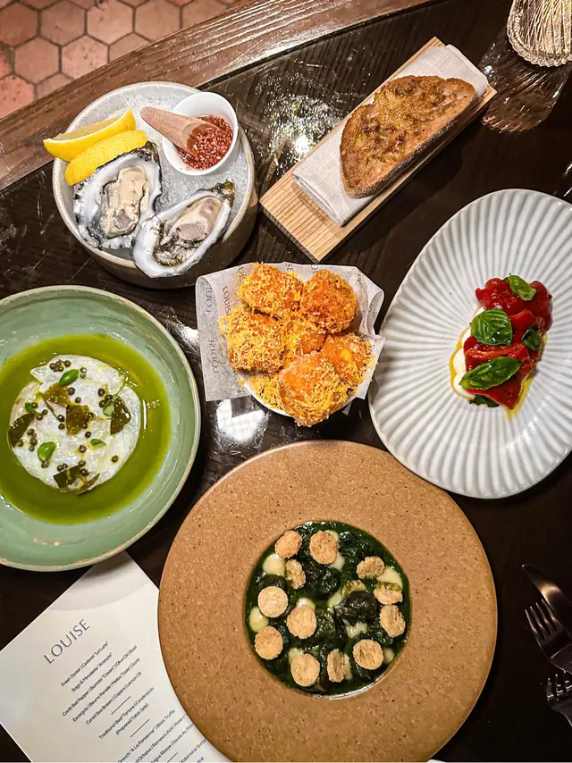 Last night, we had an unforgettable dining experience at La Terrace by Louise, now led by the talented Chef Loïc Portalier. 🌟 The new restaurant setting is absolutely stunning, offering a casual yet sophisticated atmosphere that perfectly suits a delightful evening out.We were thrilled to explore the revamped wine program curated by Head Sommelier Jasmine Low, featuring an expanded selection of 750 labels with incredible price reductions. 🍷 Each pairing we experienced truly elevated our meal to new heights.The expanded food menu was a true culinary delight! We began with fresh oysters paired with Cadoret La Lune 🦪, their briny sweetness perfectly complemented by a crisp finish. Next, we indulged in sago and mimolette “arancini,” crispy on the outside and creamy on the inside, served alongside confit bell pepper, rich burrata cream, and a drizzle of olive oil—pure heaven!The escargots with beurre persillé and melba toast 🐌 were exquisite, bursting with flavor and perfectly tender. The traditional beef tartare, prepared tableside, was a showstopper, beautifully seasoned and accompanied by an array of condiments for a personalized touch.We also enjoyed gnocchi “à la Parisienne” with black truffle and Jambon Blanc de Paris 🍝, where the light, airy gnocchi paired beautifully with the earthy truffle. The Mediterranean grilled octopus, served with romesco aioli and vibrant Riviera vegetables 🐙, was perfectly charred, boasting a smoky flavor that complemented the dish wonderfully. The Australian Black Angus ribeye, served with a decadent sauce au poivre, was simply divine—tender, juicy, and bursting with flavor. 🥩…查看更多