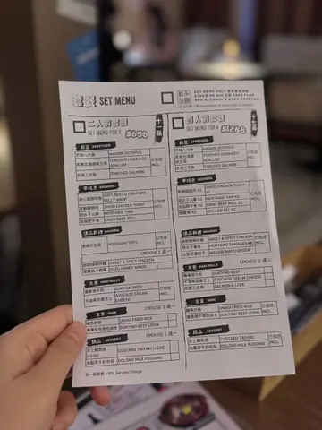 今日系铜锣湾行街,朋友就拉左我黎试佢个十一品二人套餐,一个价钱试晒11样野食都几抵。 前菜有三品 - 芥辣八爪鱼,炙烧北海道帆立贝,炙烧三文鱼。个人非常中意佢既炙烧系列,有好香既炙烧味,而用品都好新鲜,唔错的。 串烧有四品 - 糖心蛋豚肉卷,紫苏鸡腿肉,明太子山药,金菇肥牛卷。印象深刻既系佢个糖心蛋,只蛋系用左酒渍,有满满既酒香味。而紫苏鸡肉都唔错,紫苏味好香。 炸物有两品 - 唐扬炸豆腐,蜜糖柚子鸡翼。炸豆腐好好味,真系做到外脆内软,好味。 卷物有两品 - 寿喜烧牛肉,牛油果忌廉芝士。个人中意芝士,够清爽。 主食拣左寿喜烧牛脊肉乌冬,牛脊肉烧得刚好,寿喜烧汁好好味。最后仲有乌龙茶牛奶布甸,清新得黎作为结尾刚刚好。 Maple HunterVodka加上柚子酒,特别有枫糖浆同埋果汁既加入,饮落去甜香,又有点酸甜清爽。 Komerebi以琴酒为base,,加入柚子酒,果汁蜜糖,表面仲加左伯爵茶泡沫,富有层次,饮落好清新。…查看更多
