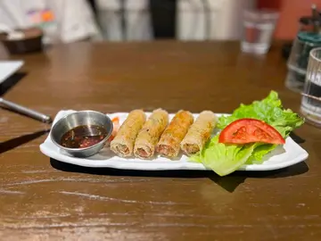 之前经过几次呢一间越式餐厅都比佢啲灯笼吸引住,今次就去试吓,仲特登坐出面可以同啲灯笼打吓卡😆🔸纯鱼扎肉法包(HK$98)法包几香脆,入面有扎肉同埋蔬菜配料,一咬落去有几种层次🔸香茅猪肉饭配特色蛋饼(HK$128)有腌咗味嘅香茅猪肉,蛋饼就几特别入面有粉丝同埋肉碎,可以捞埋个太阳蛋咁样食~🔸晚市套餐(HK$248)🔸猪肉春卷春卷炸到脆卜卜,味道都比较越式🔸蟹肉炒腊肠炒饭炒饭比平时食嘅偏湿,配料有切碎咗嘅腊肠同埋蟹肉🔸蒜蓉炒南瓜花南瓜花真系好少见,蒜蓉炒味道都几浓🔸乌龙茶冻呢个茶冻乌龙味好劲,如果钟意食茶味甜品嘅不妨试下🔸鲜芒芭菲(HK$98)冇谂过越式餐厅可以食到芭菲,每一层都有好多配料,包括寒天、麻糬、蜂蜜蛋糕、椰子奶盖,最上仲有蝴蝶酥做装饰点缀,好味又好睇☺️…Read More