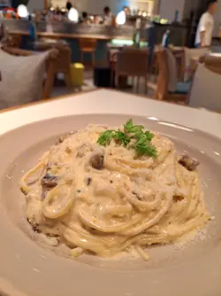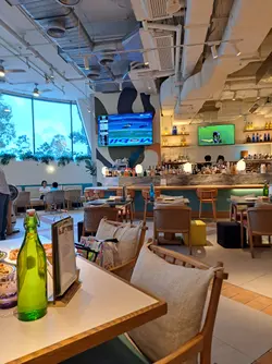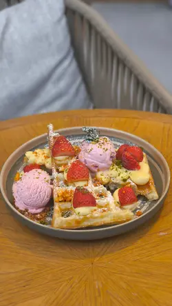 最近去咗西贡 WM Hotel 入面嘅 Msquare 餐厅,整体感觉非常好,食物有惊喜,环境舒适,服务贴心。叫左4款我们喜欢:🥇 墨鱼仔香芒青瓜沙律(Green Papaya Mango Squid Salad)呢道沙律真系令人眼前一亮。沙律菜新鲜爽脆,柠檬油醋带出清新香气,芒果香甜,墨鱼仔爽口弹牙,口感层次丰富。系一个非常出色嘅前菜,食完即刻开胃,令人期待下一道菜。🥈 炸鸡翼配蜜糖是拉差酱 + 青瓜酸忌廉(Wild Wings)鸡翼炸得外脆内嫩,香脆松软,蜜糖是拉差酱甜中带辣,配上青瓜酸忌廉,味道平衡得好好。酱汁唔油腻,仲有解腻作用,食完唔会觉得滞,非常讨好。🥉 香蒜榄油虾肉意粉(Prawn Aglio Olio)香蒜味扑鼻,橄榄油香气浓郁,虾肉鲜甜爽口,意粉煮得恰到好处,弹牙唔过熟。虽然喺屋企都煮过橄榄油意粉,但餐厅煮出嚟嘅香气真系非同凡响,令人回味。🍓 士多啤梨雪糕窝夫配Custard酱(Strawberry & Custard Waffle)甜品作为压轴,亦都冇令人失望。窝夫外脆内软,士多啤梨雪糕清甜,Custard酱香滑浓郁,系一个完美嘅收尾。🏨 餐厅环境与服务餐厅位于酒店内,地方宽敞,装潢雅致。侍应服务态度非常好,亲切有礼,令人感觉舒服自在。Msquare 餐厅系一个值得推荐嘅地方,无论系情侣约会、家庭聚餐定朋友聚会都非常适合。闲日周末唔知去边好,不妨考虑嚟呢度享受一餐!…查看更多