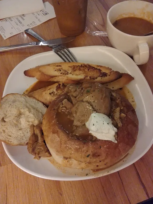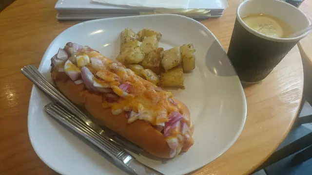 自己幾鐘意食All day breakfast,貪佢樣樣有啲,呢個早餐算係滿足,個兩片包,仲有堆薯仔...都係飽肚野,但係個包冇乜牛油好難入口,又硬,要放啲蛋上去一齊食,個蛋都幾滑~仲有條小腸,有少少燶味,仲有啲炒菇...芝士多士,同屋企整個啲差唔多,不過不失,芝士味唔重仲有呢個要下午茶時段先有嘅治,個包皮又勁厚好飽呀!中間有蕃茄,蛋,煙肉,芝士同菜,不過冇可能一啖食到...我係一層層分開黎食...冇左三文治嘅意義添😂最後仲整多個芝士撻..佢啲芝士有少少酸酸地,我就係鐘意呢種味呀!如果熱啲就好喇!…查看更多