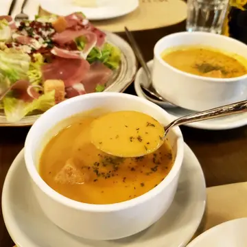 有日去大围揾朋友食晚饭,揾到呢间食意大利既餐厅叫「M3 Italian」。🇮🇹💕🤓😊两个人点咗以下餐点……餐前小吃:🥖面包配油醋汁上枱时仲暖暖哋,食落口感松软,配上油醋汁,好味。😋1️⃣M3 沙律🥗$168食材包括烤鸡🐔、烟三文鱼🍣、巴马火腿🥓、大量沙律菜🥗,配上三款酱汁,分别有沙律酱、芝麻酱、黑醋汁,份量十足,食材新鲜。👍🏻2️⃣炭烧美国肉眼扒🥩$328拣咗五成熟,肉质淋滑,配上爽脆芦笋,香脆粗薯条🍟,浓郁烧汁,好惹味。😋3️⃣意大利四色芝士手制薄饼🧀🍅🍕$178超浓郁芝士味,芝士迷必点,大爱手制薄脆饼底,加上新鲜蕃茄酱,好醒胃,好正。👍🏻下次想品尝一下佢哋嘅西班牙烧乳猪、黑松露意粉!😋💕…查看更多