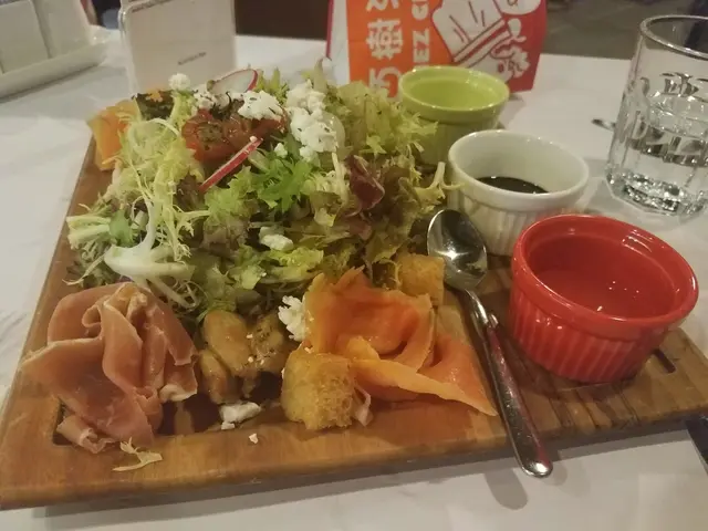 呢间开左系沙田围都好耐,但一直都未尝试。今次见佢出左平价版既Set Dinner,就试试佢😆三个人嗌左三款Set Dinner Share食。分别系: 辣肉肠Pizza、意大利粉同猪手。前菜有三款拣,我地嗌左一个烟三文鱼沙律,两个烟肉芝士焗青口。烟三文鱼有两旧都几大旧,沙律菜都唔少,而青口都好大只,芝士汁都好creamy 。到主菜:最好味系辣肉肠pizza,个底够薄够脆,辣肉肠同芝士既分量都好够,好满足🥰温泉蛋烟肉忌廉意大利粉,可以我唔惯啲意粉仲系唔烚透既感觉,有啲硬,不过个汁胜在够多同Creamy。德国咸猪手 无乜咸味,不过肉质都叫滑。份量都唔少!三个人share食都觉得好饱,真系差啲食唔晒。呢间服务水准唔错,好快有人帮你收碟同食完前菜会换碟!呢个价钱 抵既☺️