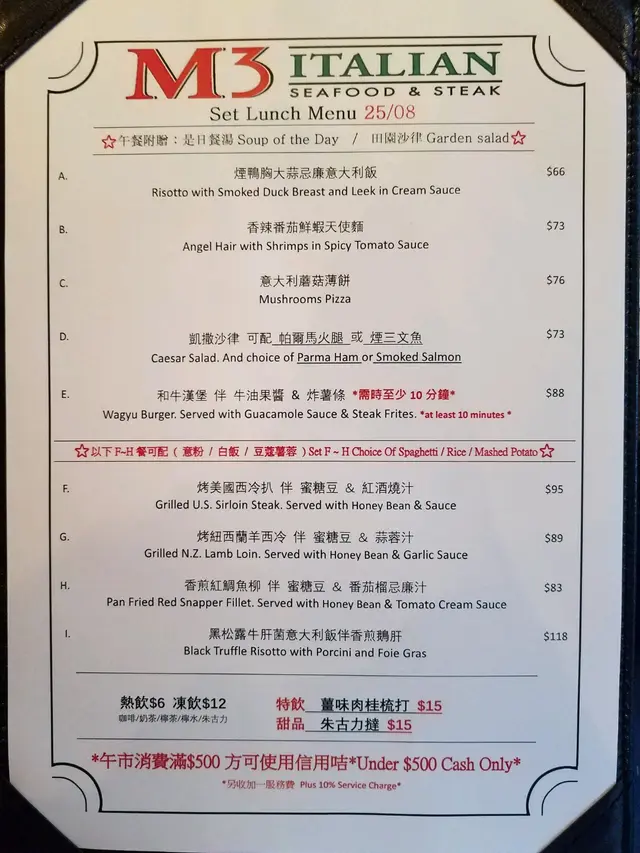M3 Italian (沙田) 网址: https://s.openrice.com/QrLS0oRe200 地址: 香港沙田沙角街8-12號花園城1期地下2號舖 电话: +852 26993535