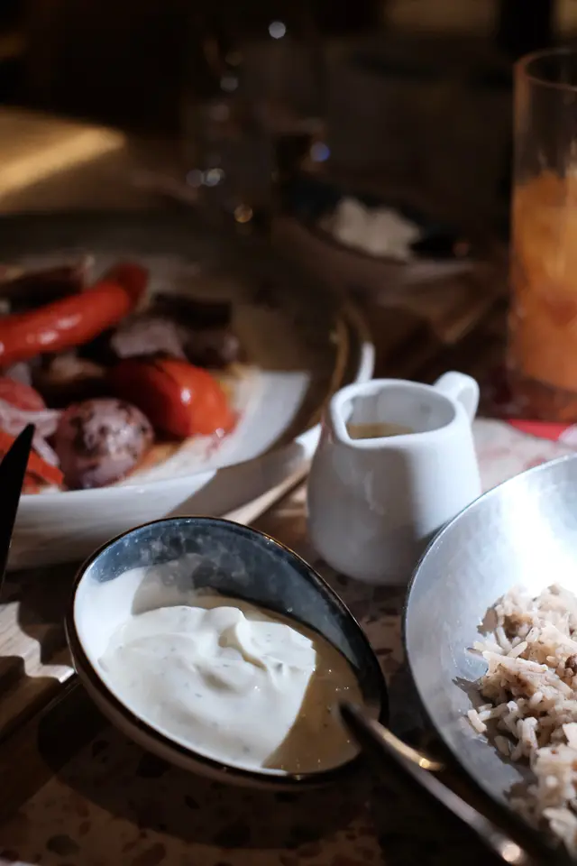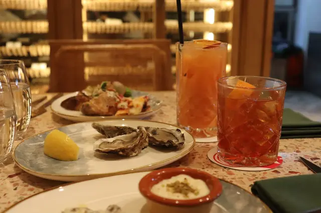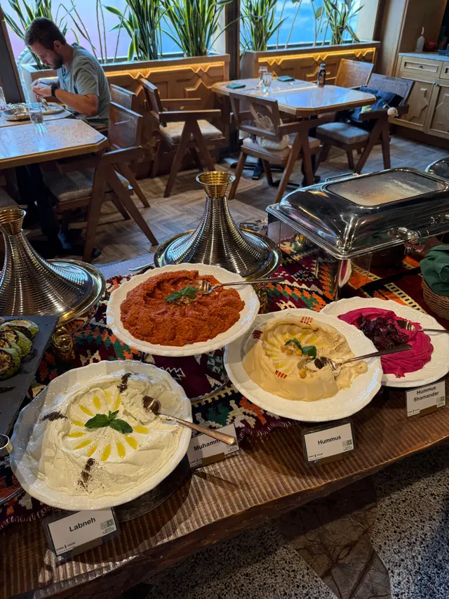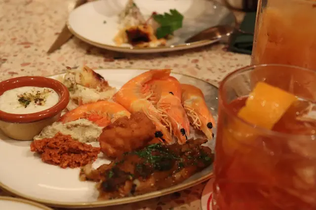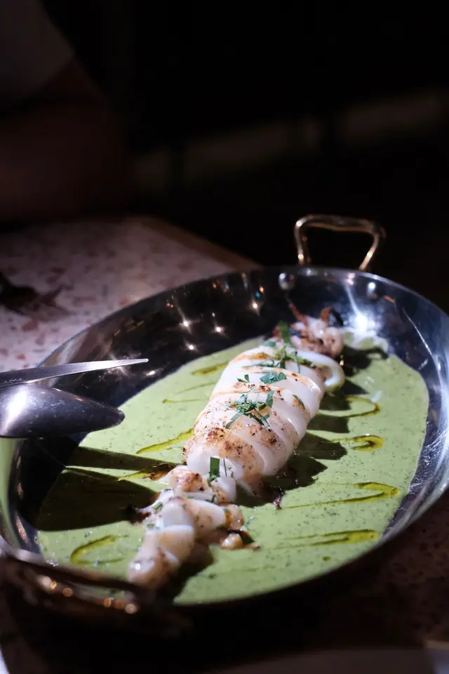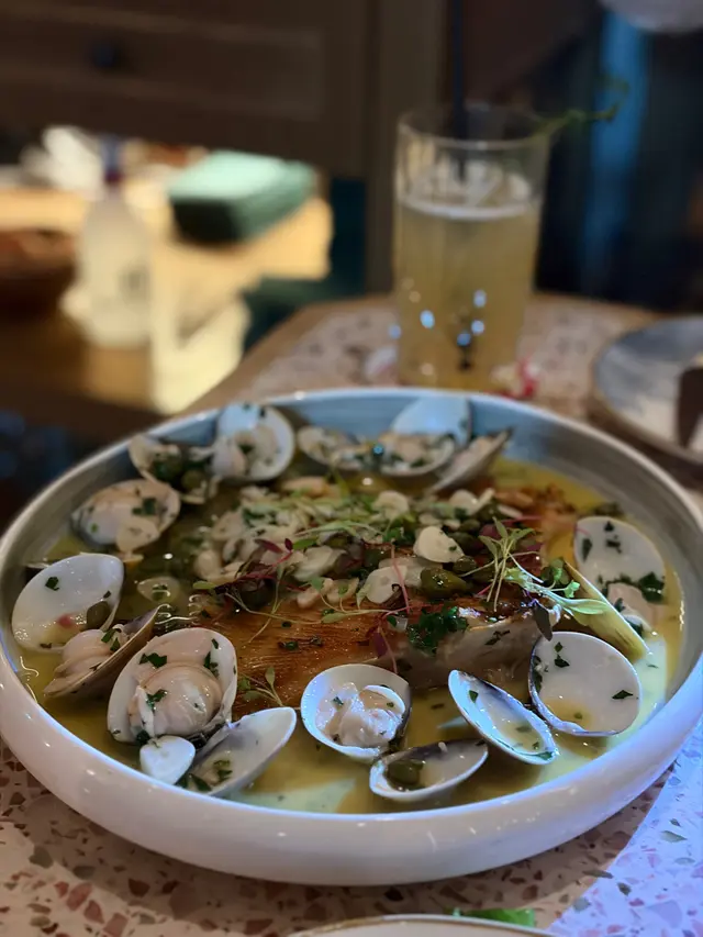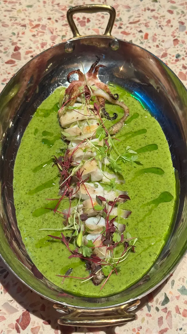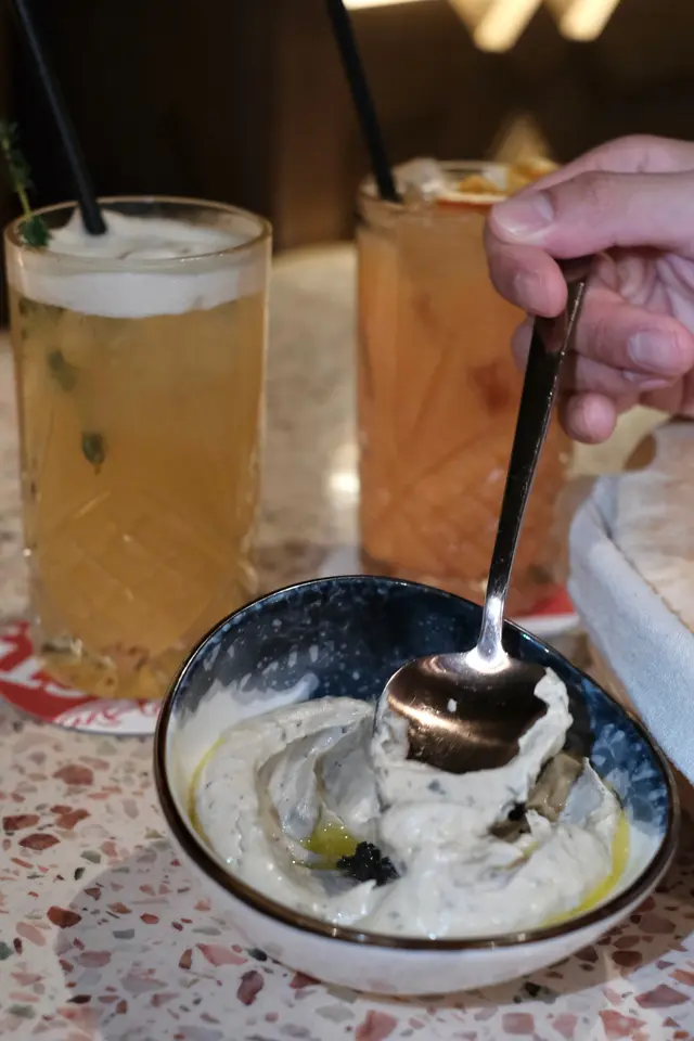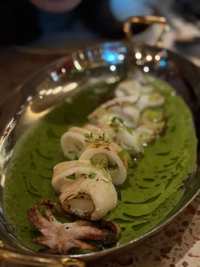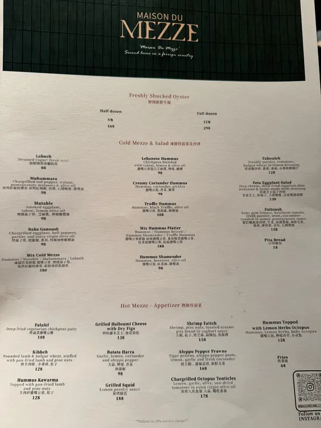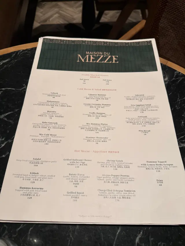 今日黎接老公收工順便食飯,佢成日話東涌無咩好食,我就上網搵下啦,搵到間地中海菜由於對香港人我黎講係樣好新奇既野,即刻就卜左個裝修好靚好有feel,燈光偏暗,好岩情侶用餐黎到要試下佢d signature mocktails佢有益力多,再有d橙,芒果同士多啤梨汁,飲落好fresh,重點係加左d益力多,係我鍾意既口味呢杯cocktail vodka做底,成份有青瓜,接骨木花甜酒,橄欖鹽水,所以飲落,既有花香木既微甜,又有些少鹹味前菜叫左Fattoush,佢係一兜黎巴嫩蔬菜沙律侍應會推架車仔去你面前,即場整俾你落調味,再攪下攪下咁呢兜野好大兜,有蕃茄,芫茜,番茜,薄荷葉,青瓜,石榴粒<(好驚喜好夾每一樣都非常新鮮,對喜歡草食既我簡直係天堂Grilled Squid炭烤魷魚擺盤好靚係我第一印象,超好食係第二印象佢唔似出面串燒店係熱辣辣,呢到係恆溫偏凍但,原來凍食係另一番風味,青色果d係lemon parsley sauce 檸檬香芹醬有好正既草本鮮香,魷魚用黎沾呢d醬食,可以拉長魷魚既鮮味同時又做到味道豐富既效果Skate Fish and Clams好新奇真係,邊會食過魔鬼魚,真係即刻點魚身烹調至外層微焦,一切開裡面係白色既魚肉,食落如果一定要搵同類野形容我覺得似鱈魚但再結實d既肉質,魚肉嫩滑,魚骨幾軟都可以食埋伴碟既蜆肉好新鮮,可以吸滿d檸檬牛油香芹汁,再啜入口食。整體味道清爽,唔會覺得肥膩,魔鬼魚首次食真係幾有驚喜Kunafa反正黎到係為左試地中海菜既新奇菜色甜品都唔例外,侍應姐姐講左句:this one is nice!咁我地就即刻點呢個甜品係熱辣辣的,正當我地好怕飽上加飽,食一啖之後大家都收聲佢外層係薄薄酥脆既麵包碎之類既野,或者似炸既細麵?然後咬落去,內餡係甜奶酪,有微微拉絲效果!入面有開心果碎粒好香口,好幸福絕對絕對要點黎食,唔食魔鬼魚都要食呢個甜品…查看更多
