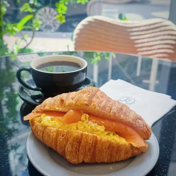 返工想食个牛角包做早餐🥐去左黄竹坑地铁站附近嘅Maison Eric Kayser有个Croissant Sandwich Breakfast Set🥐☕️仼何有料嘅牛角包加杯黑咖啡/茶($70)🧡【Smoked Salmon & Egg Mayo Croissant 烟三文鱼蛋沙律牛角包🥐+Black Coffee黑咖啡】好味指数:⭐️⭐️⭐️⭐️牛角包大大件!好香牛油味🤩因为啲馅系冻食嘅烟三文鱼同蛋沙律,所以个包系喺雪柜拎出黎,依款系冻食唔系热辣辣𠮶种夹住𠮶块烟三文鱼大大块👍🏻中间嘅蛋沙律都唔野小,好足料好厚😋杯啡都系正常Cafe嘅黑咖啡咁☺️好Classic嘅西式早餐☺️…查看更多