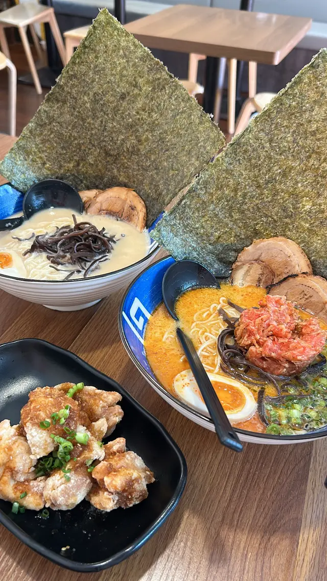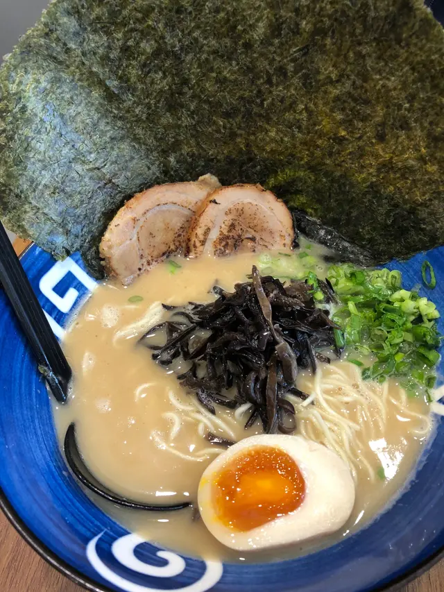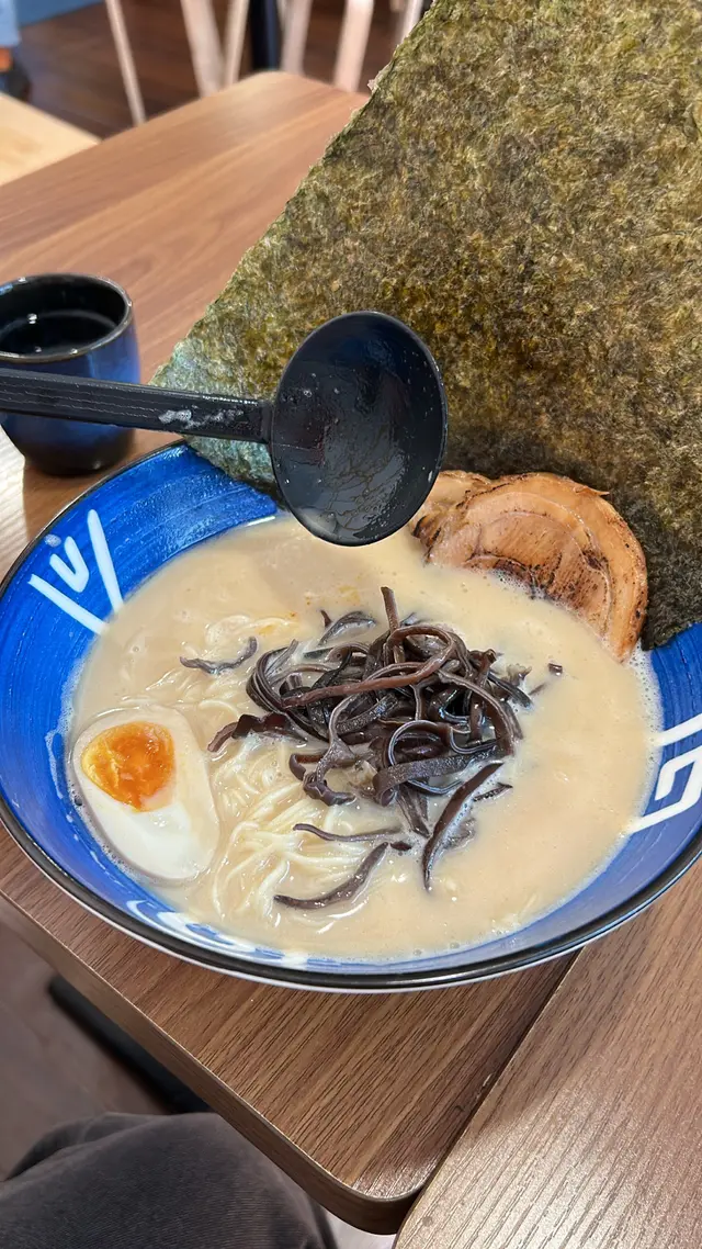 今日同朋友去油麻地買嘢,經過見到呢間拉麵店,鋪面又幾吸引有特色,大家又肚餓決定入去食碗拉麵🍜醫肚。我同朋友叫咗兩碗拉麵同一個小食、一個甜品,拉麵有軟硬度選擇,可以迎合個人嘅口味。❀特濃豚骨拉麵 $82乳白色嘅豚骨湯,濃郁湯頭無味精不油膩,麵條軟硬度適中,爽口有麵香。紫菜大大塊,建議撕開小塊配麵一齊食,仲可以吸收埋豚骨湯底,好好食。叉燒肥瘦適中夠入味,而溏心蛋味道亦值得一讚👍🏻!❀黑蒜油豚骨拉麵 $88 朋友就揀咗黑蒜油豚骨拉麵,加入黑蒜油,帶有濃濃的蒜香🧄,麵條煙靭爽口,叉燒入口鬆軟,糖心蛋流心狀態賣相一流。朋友太肚餓,追加叉燒兩塊😂。❀雞軟骨餃子 $25(5隻) 外皮薄脆,微焦香脆,內餡的雞軟骨和豬肉完美融合,爽脆口感,滋味無窮。❀日本芝士蛋糕 $25入口有濃郁芝士味,軟滑濕潤,口感好似雪糕,芝士控必食。查看更多