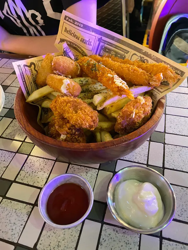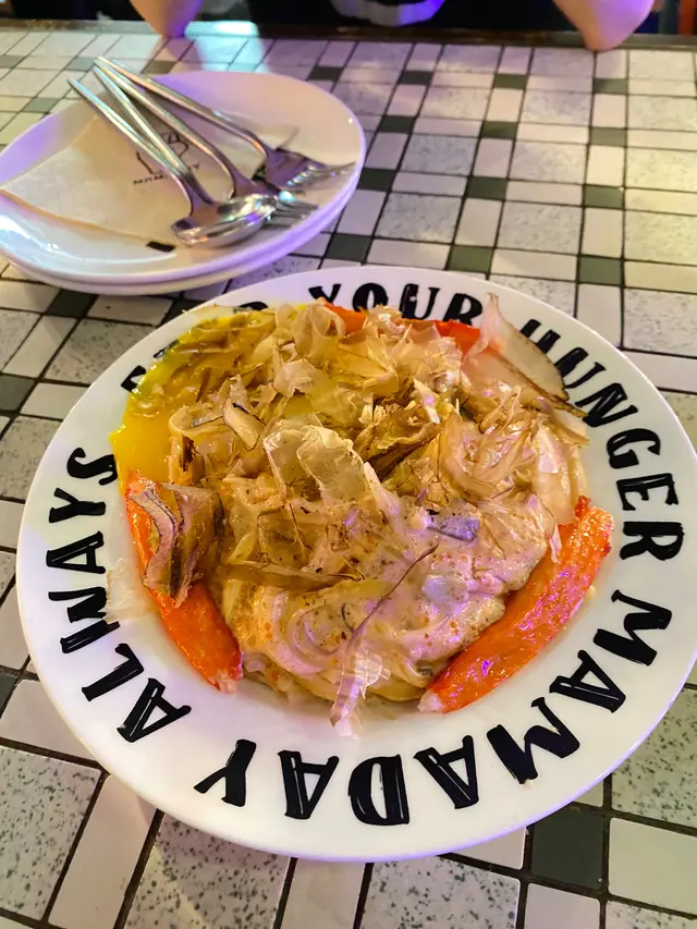 年輕人必食推介🤎🤎 22Yyisme等级32025-04-111K 浏览 关注 Mamaday-位於尖沙咀嘅打卡cafe,要行樓梯上去,外牆有大大個招牌十分醒目😗餐廳裝修別有一番怪趣味,周圍都係打卡位,鍾意試新嘢可以去試下。嗰晚去到全場滿坐,記得book位!感覺似fusion菜,個人覺得偏重口味,啱晒重口味人士👍🏼小食拼盤真係乜都有,炸蠔、芝士條、炸蝦、薯條。同朋友想去gathering是不錯的選擇,一路傾一路食。Orders🤎🤎🤎·明太子卡邦尼意粉 ·軟殼蟹菠蘿pizza · 「乜都炸啲小食拼盤」😂…查看更多以上食记乃用户个人意见 , 并不代表OpenRice之观点。赞好分享年輕人必食推介🤎🤎 Mamaday https://s.openrice.com/QrLT0p8TR00检举 张贴 评分3味道4环境3服务3卫生3抵食用餐途径堂食用餐时段晚餐
